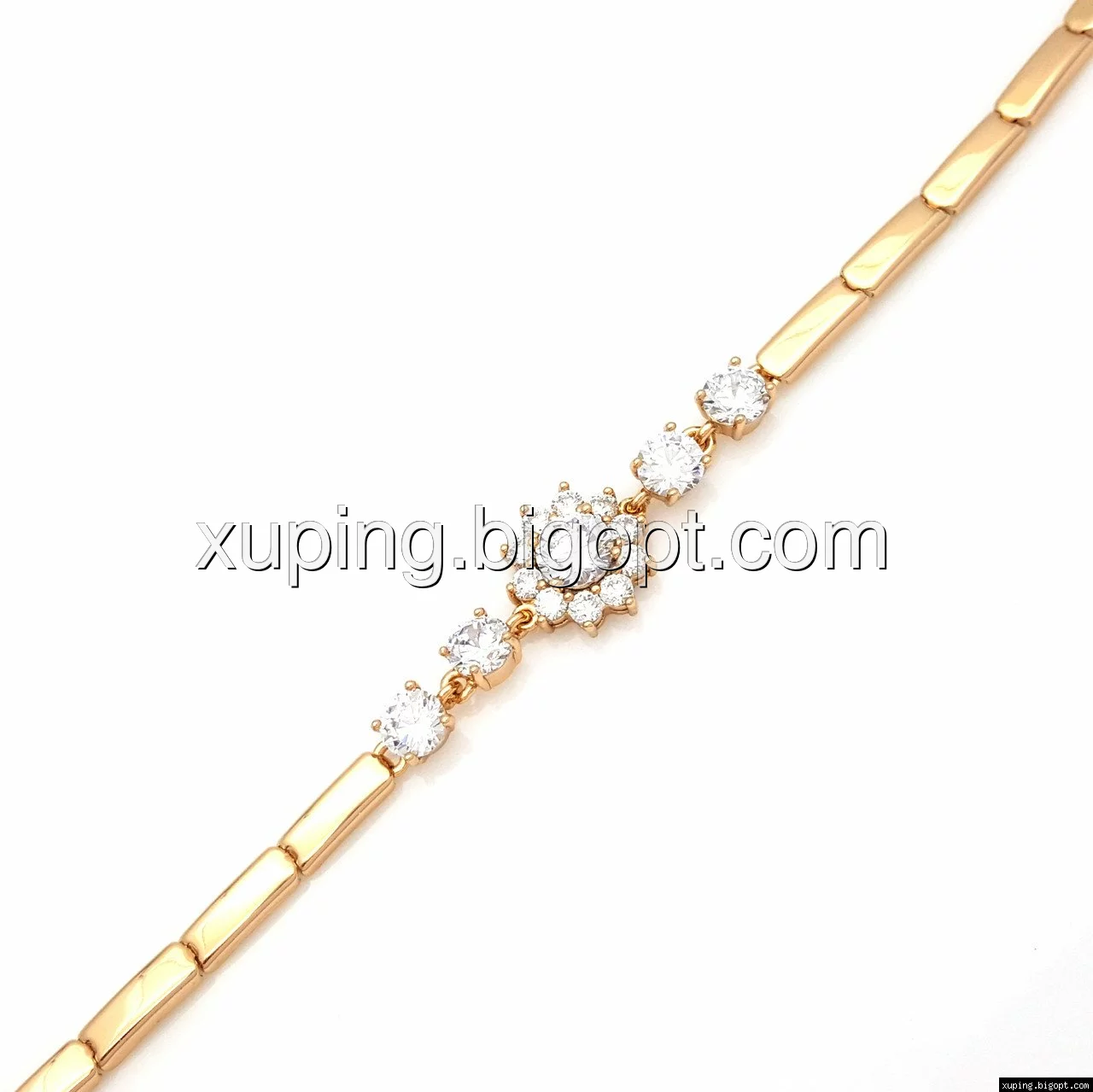 Браслет выполнен из медицинского сплава, который  изготовляется на основе латуни. Сверху бижутерия покрыта позолотой  для того чтобы придать ей насыщенный цвет, яркий блеск и максимальное сходство с золотом. Кроме того, в качестве декора мастера используют цирконий, который крепится при помощи крапанов. Как известно этот камень широко применяется в ювелирном искусстве, так как он обладает восхитительным блеском и прочностью. Данная бижутерия представлена заводом-производителем марки «Xuping» – все изделия оригинальны и имеют одинаково высокое качество.