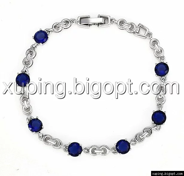 Браслет родированный с синим цирконием, р.18, р.19,5