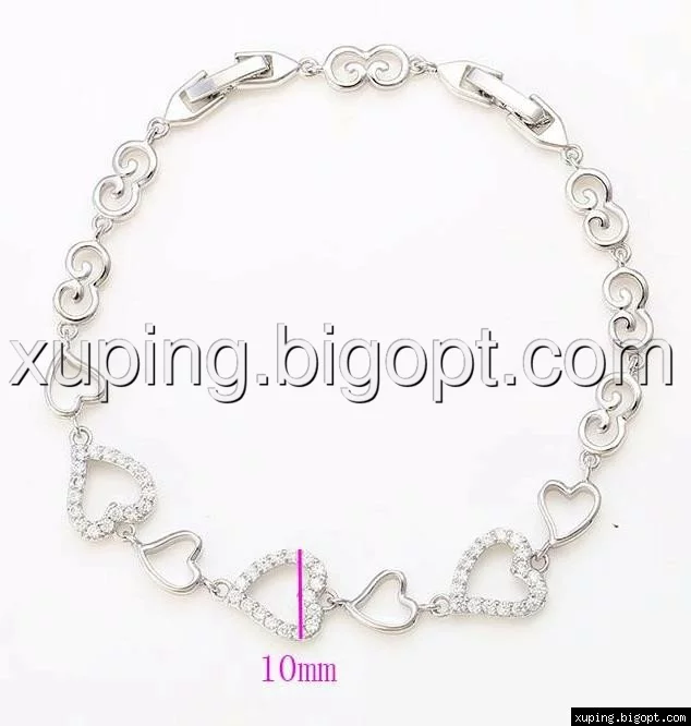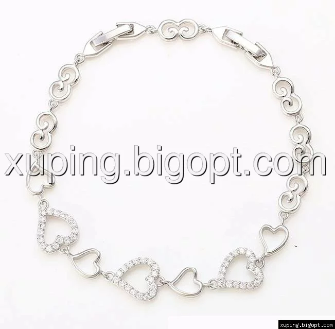 Браслет родированный Три Сердца с цирконием, р.17,5, р.20,5