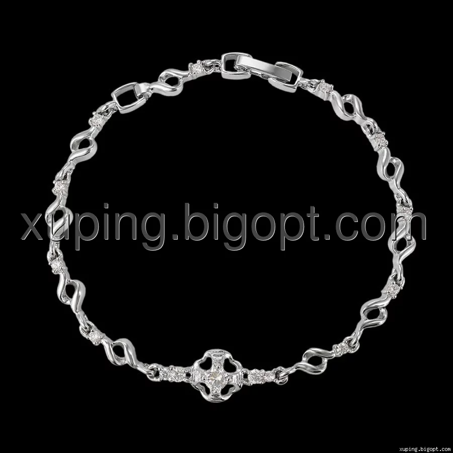 Браслет родированный, Цветок с цирконием, р.16,5, р.18,5