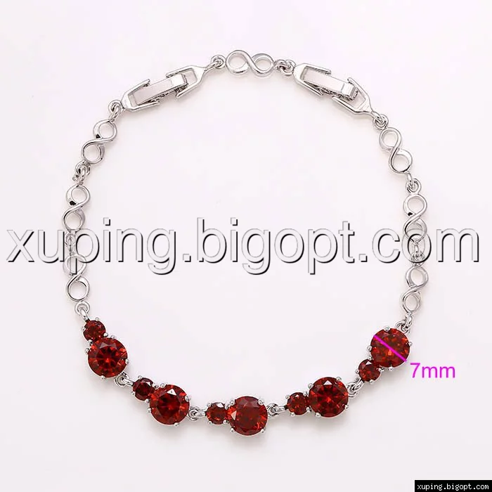 Браслет с красным цирконием, р.17.5, р.20.5, родий