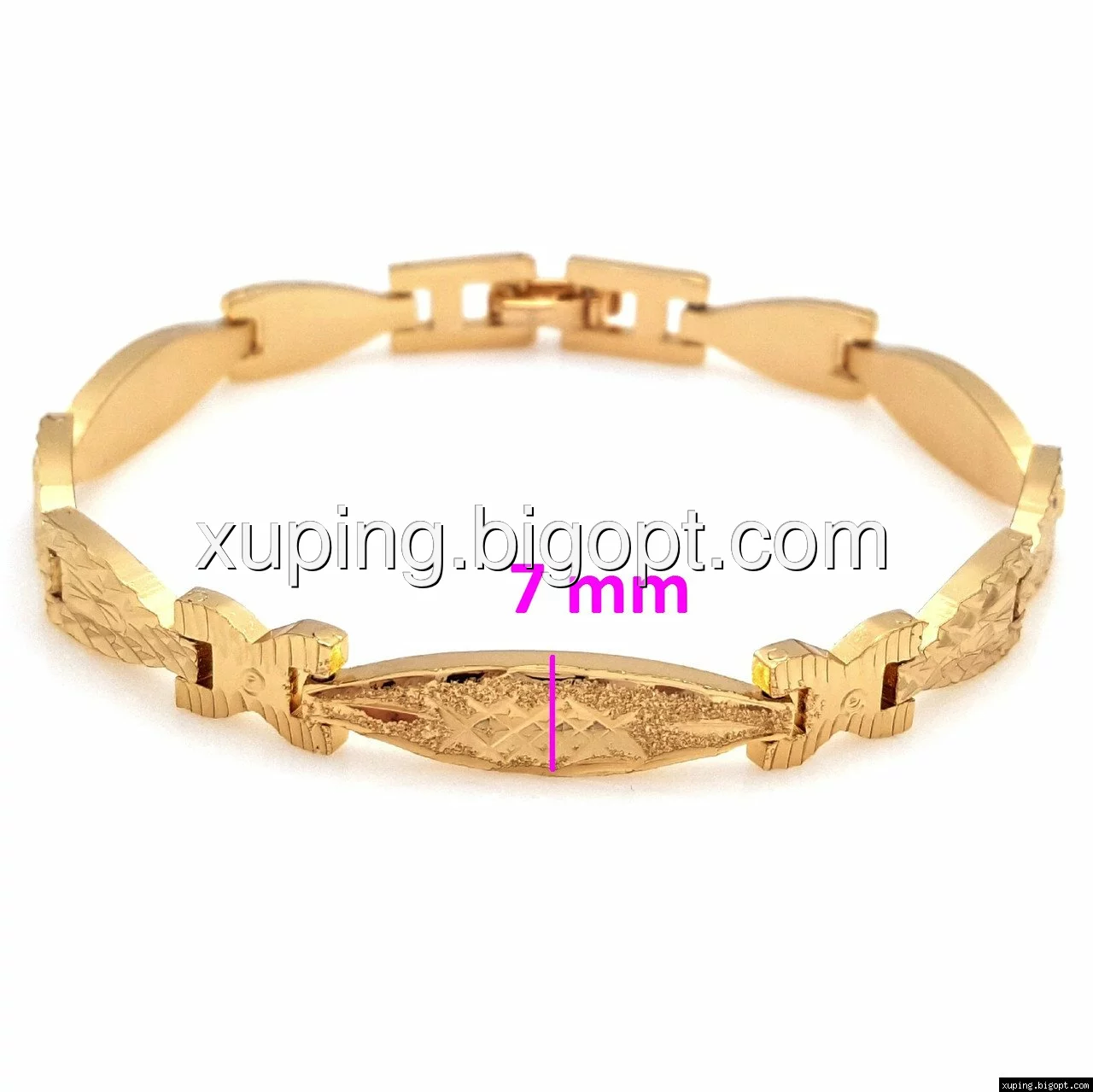 Браслет выполнен из медицинского сплава, который  изготовляется на основе латуни. Сверху бижутерия покрыта позолотой  для того чтобы придать ей насыщенный цвет, яркий блеск и максимальное сходство с золотом. Кроме того, в качестве декора мастера используют цирконий, который крепится при помощи клапанов. Как известно этот камень широко применяется в ювелирном искусстве, так как он обладает восхитительным блеском и прочностью. Данная бижутерия представлена заводом-производителем марки «Xuping» – все изделия оригинальны и имеют одинаково высокое качество.