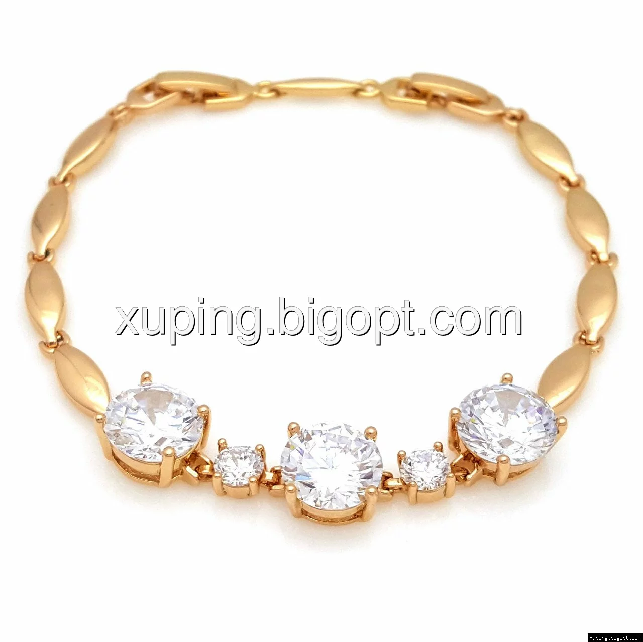 Браслет Три Больших циркония, р.17,5, р.21, позолота Xuping