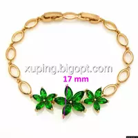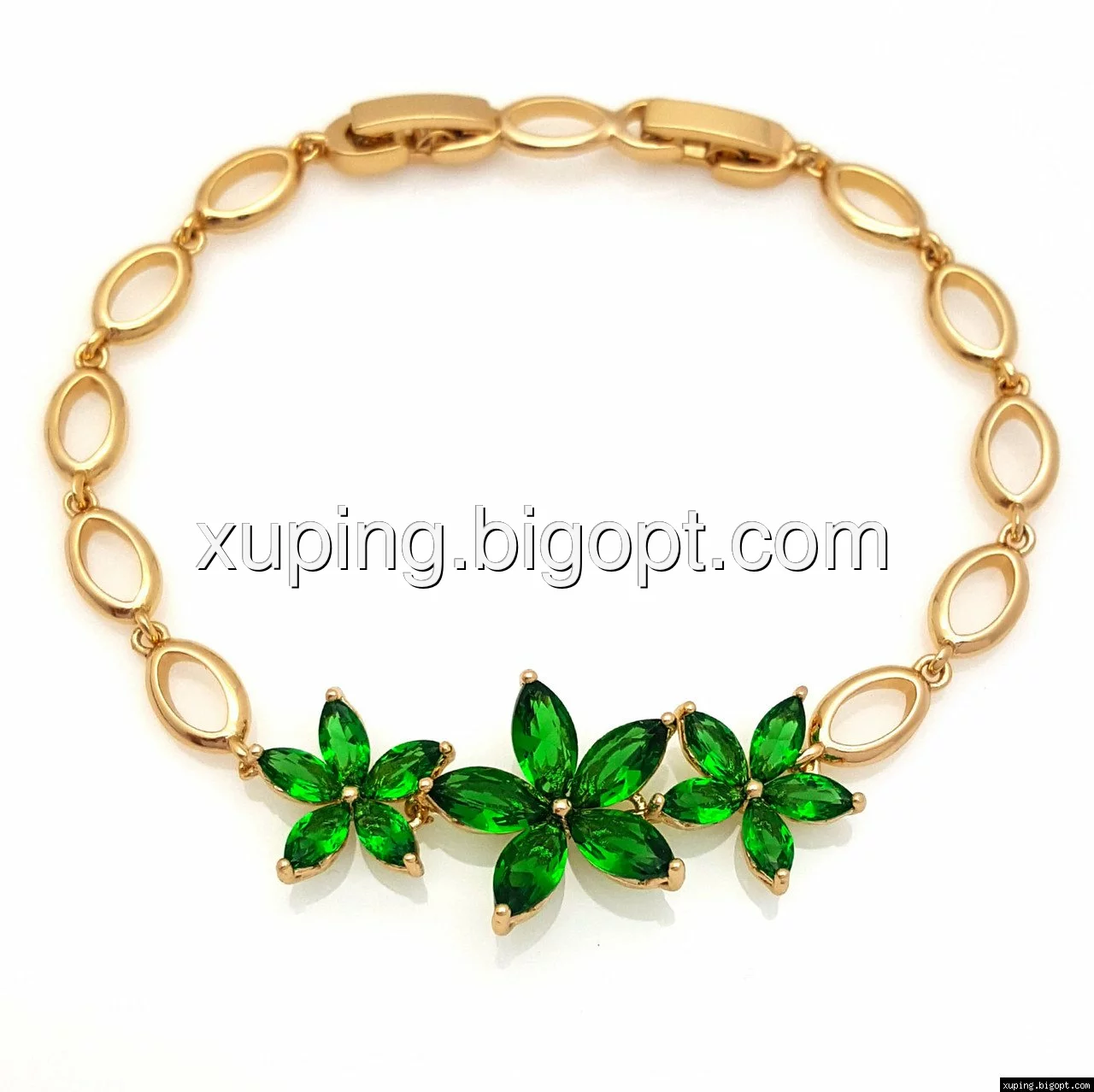 Браслет Три Цветка, с зеленым цирконием, р.17, р.19,5, позолота Xuping