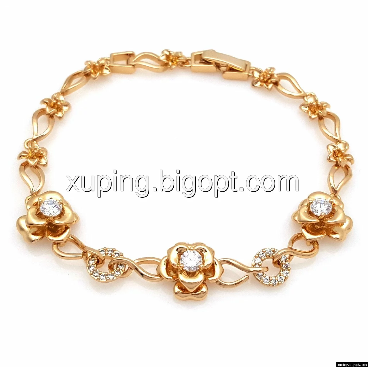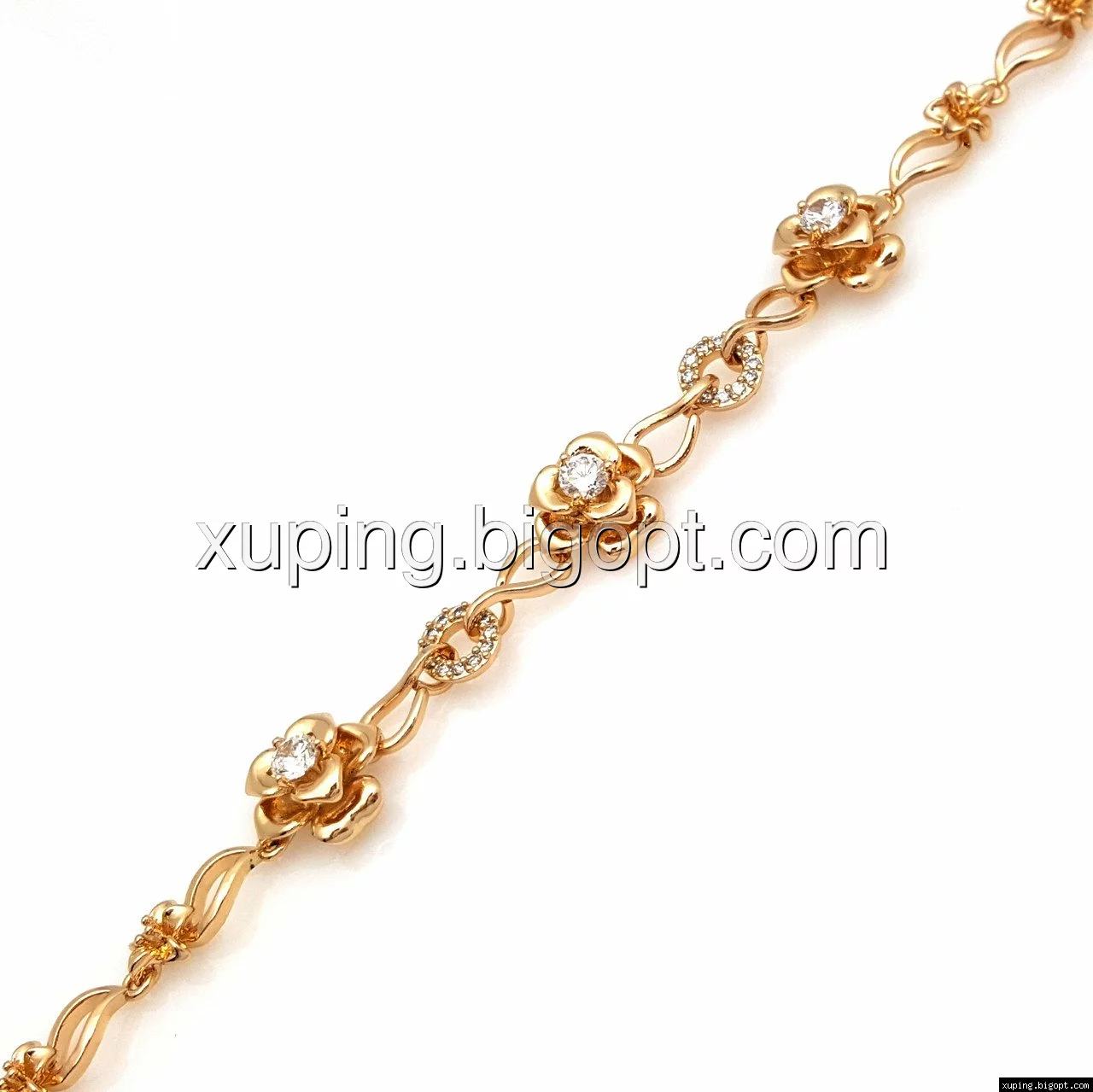 Браслет выполнен из медицинского сплава, который  изготовляется на основе латуни. Сверху бижутерия покрыта позолотой  для того чтобы придать ей насыщенный цвет, яркий блеск и максимальное сходство с золотом. Кроме того, в качестве декора мастера используют цирконий, который крепится при помощи клапанов. Как известно этот камень широко применяется в ювелирном искусстве, так как он обладает восхитительным блеском и прочностью. Данная бижутерия представлена заводом-производителем марки «Xuping» – все изделия оригинальны и имеют одинаково высокое качество.