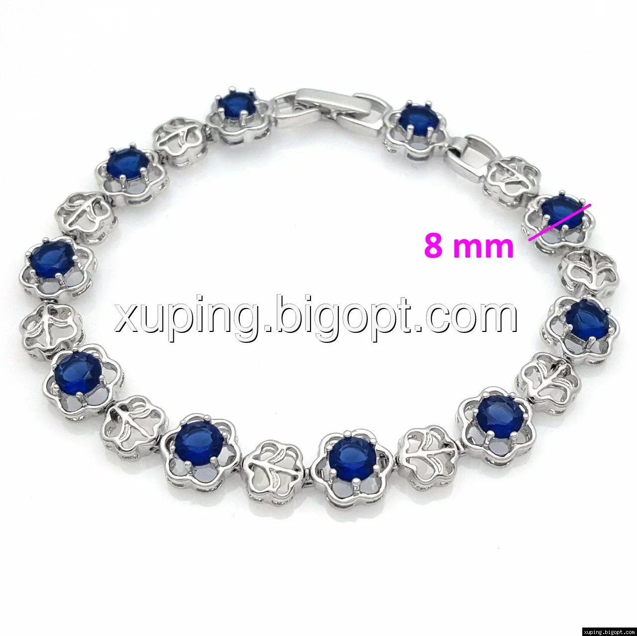Браслет Цветочная Дорожка, с синим цирконием, р.18,5, родий