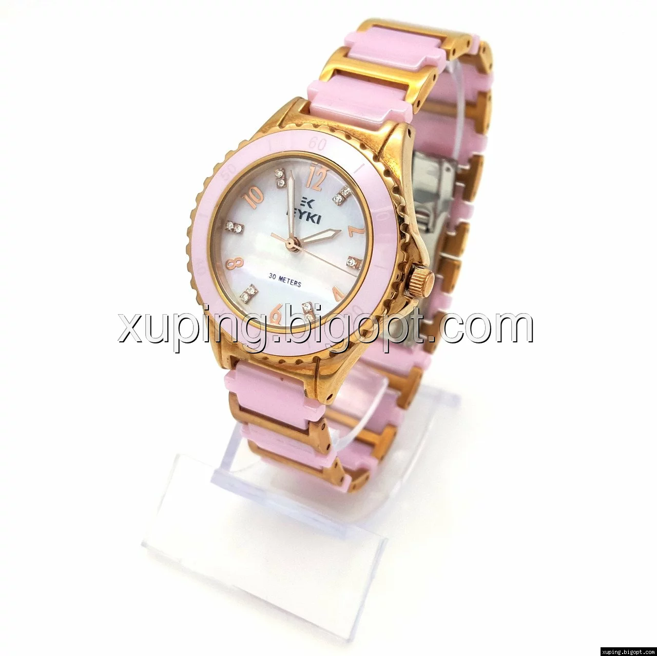 Часы EYKI Золотистые сна браслете с розовой вставкой, р.18см, циферблат 34мм