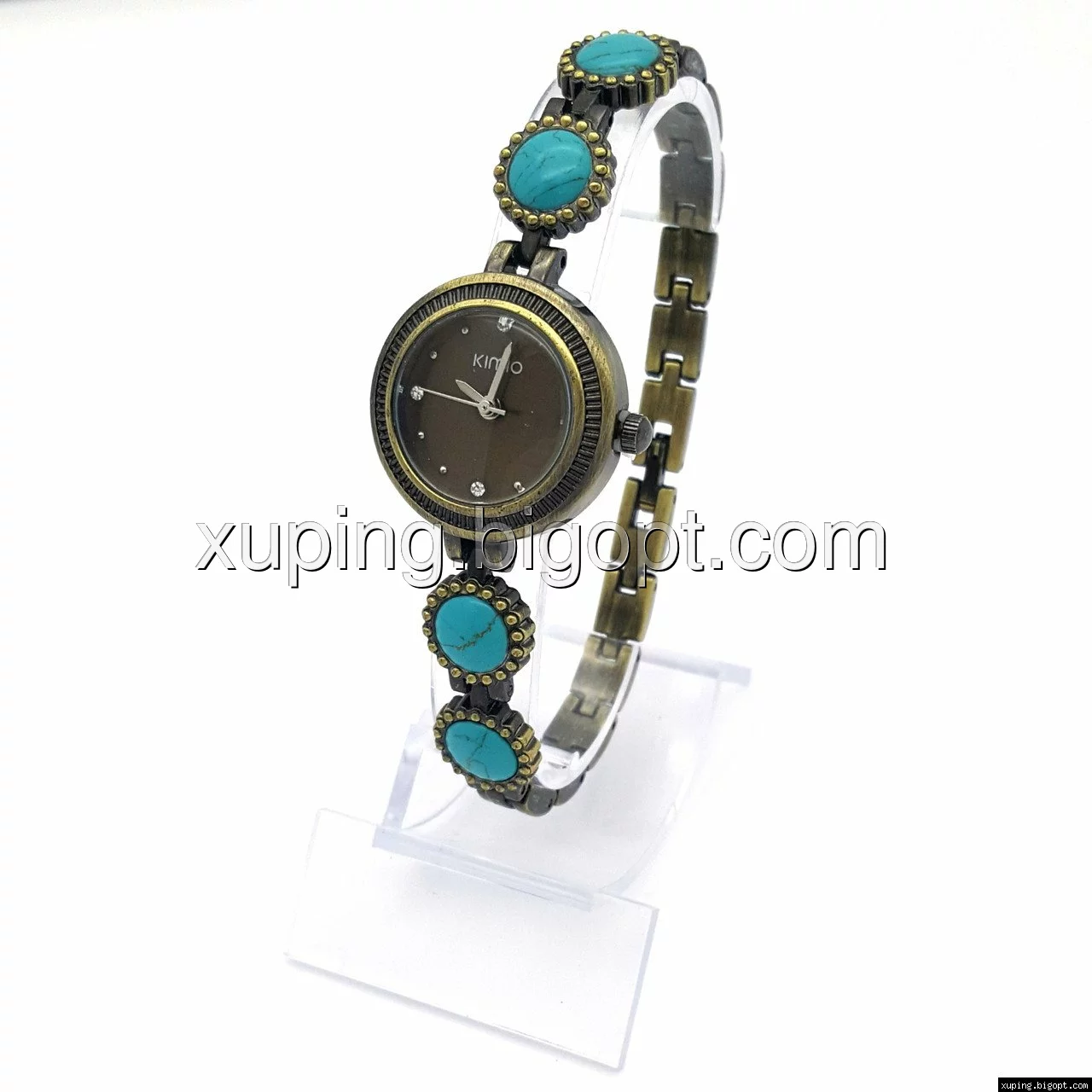 Часы KIMIO на браслете с бирюзовыми камнями, длина браслета 20, циферблат 25мм