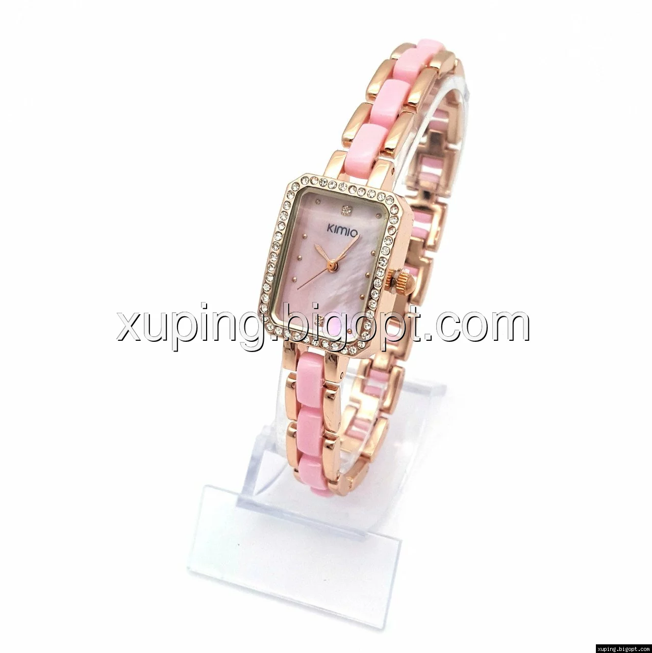 Часы KIMIO, под золото с розовой вставкой на браслете, длина браслета 19,5см, циферблат 20*25мм