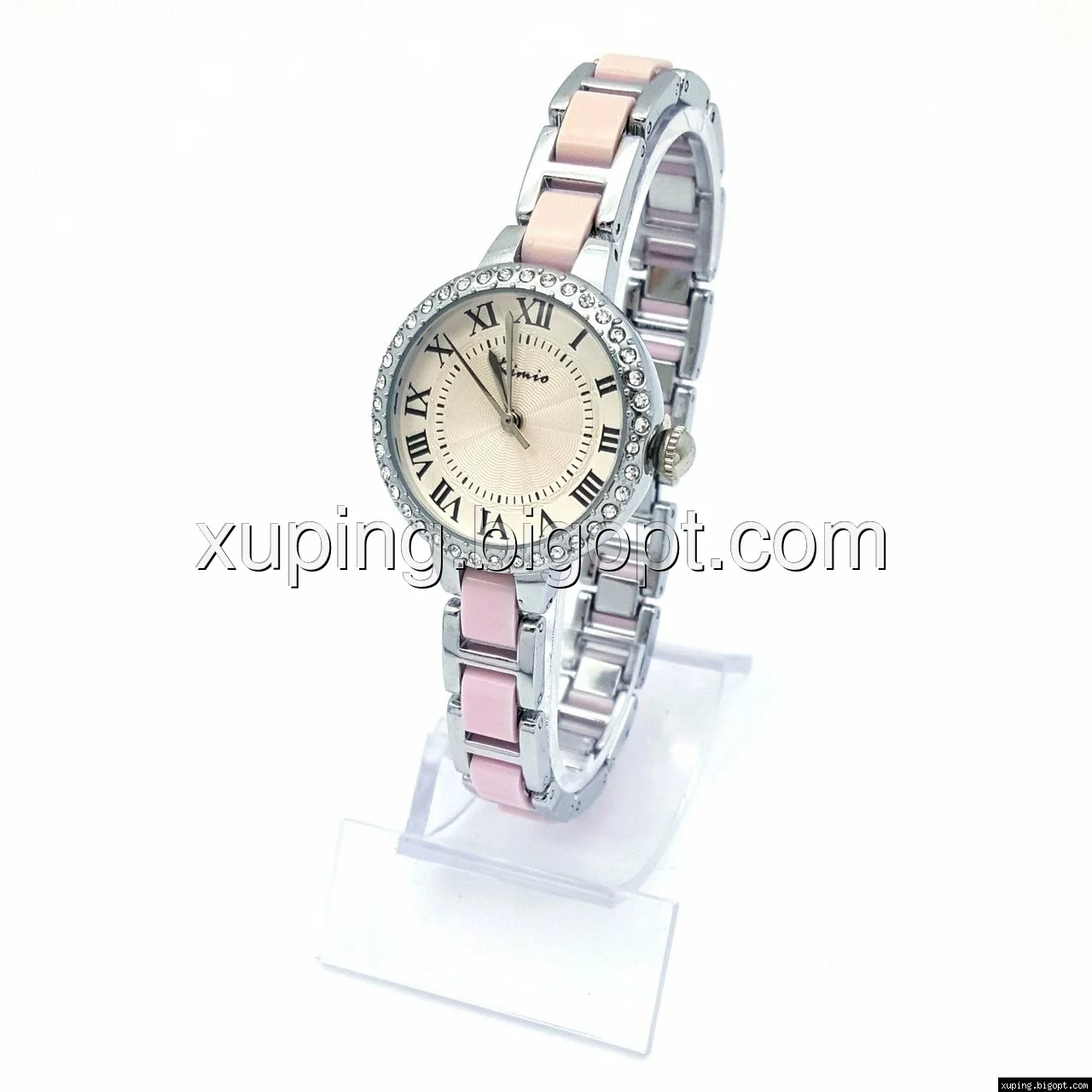 Часы KIMIO Серебристый, с розовой вставкой и камнями, длина браслета 19см, циферблат 27мм