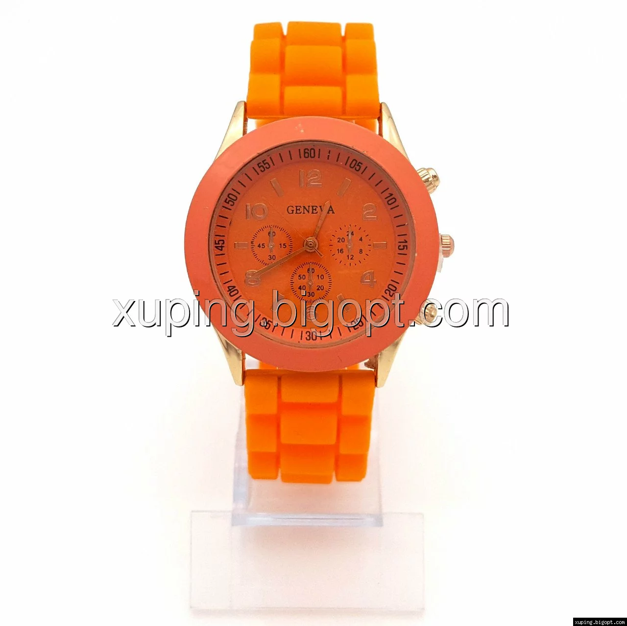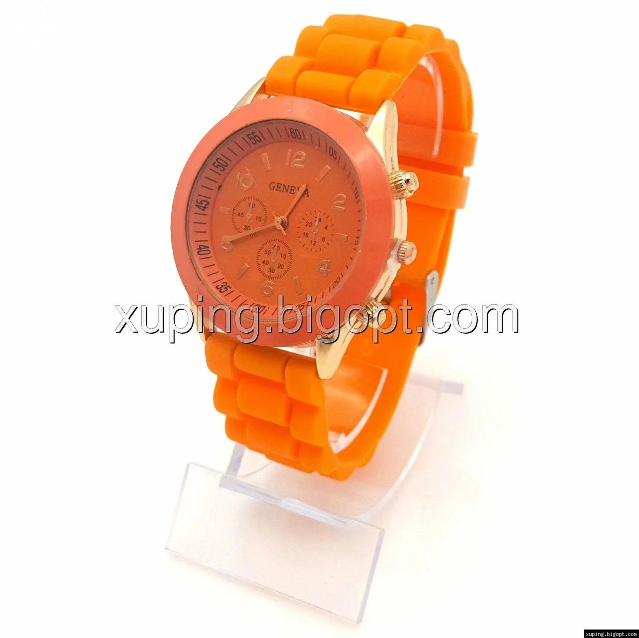 Часы на оранжевом силиконовом ремешке, длина 17-22см, циферблат 38мм