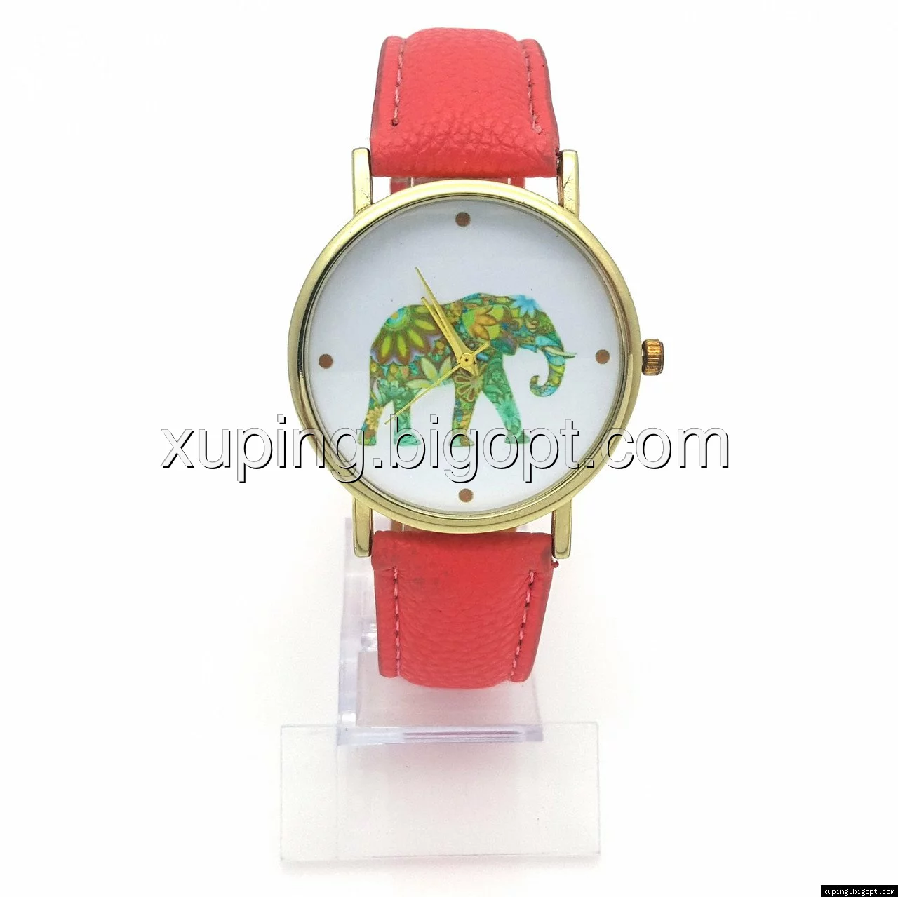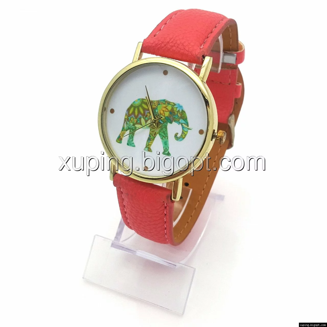 Часы на розовом ремешке, со Слоником, длина 18-22см, циферблат 38мм