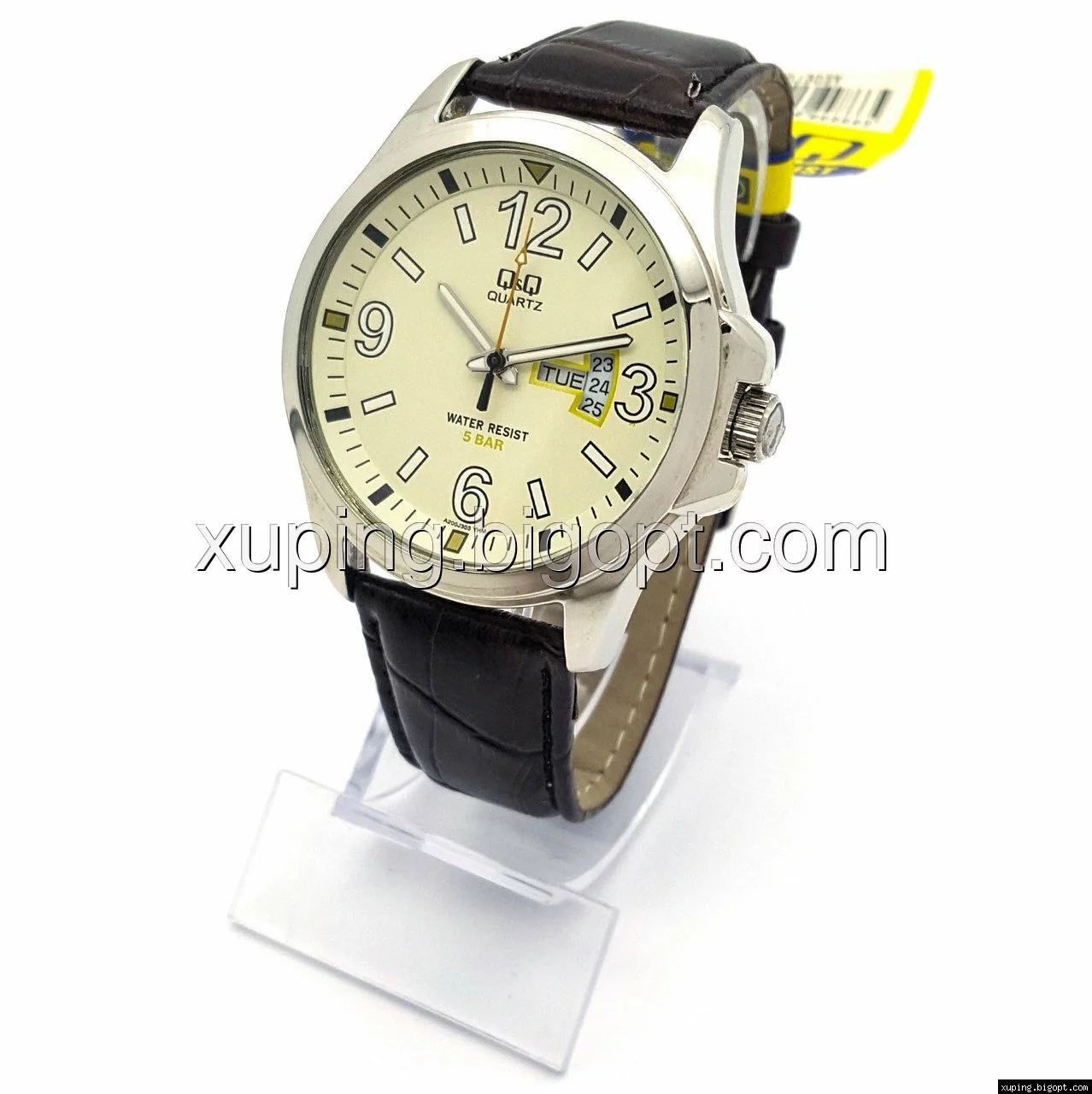 Наручные часы марки QQ на кожаном ремешке с японским механизмом.