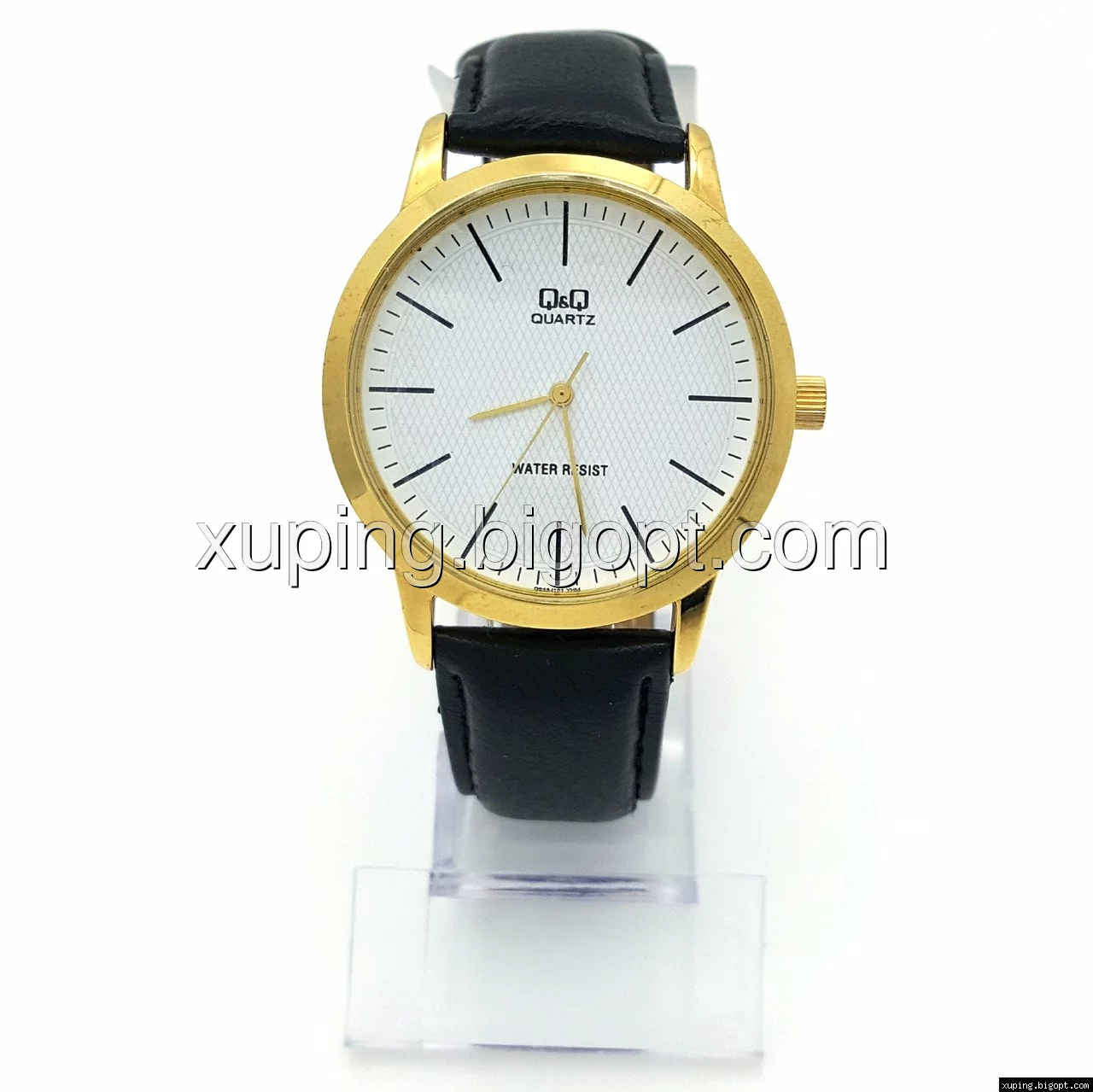 Часы QQ золотистый на коричневом ремешке, длина 18-22см, циферблат 39мм