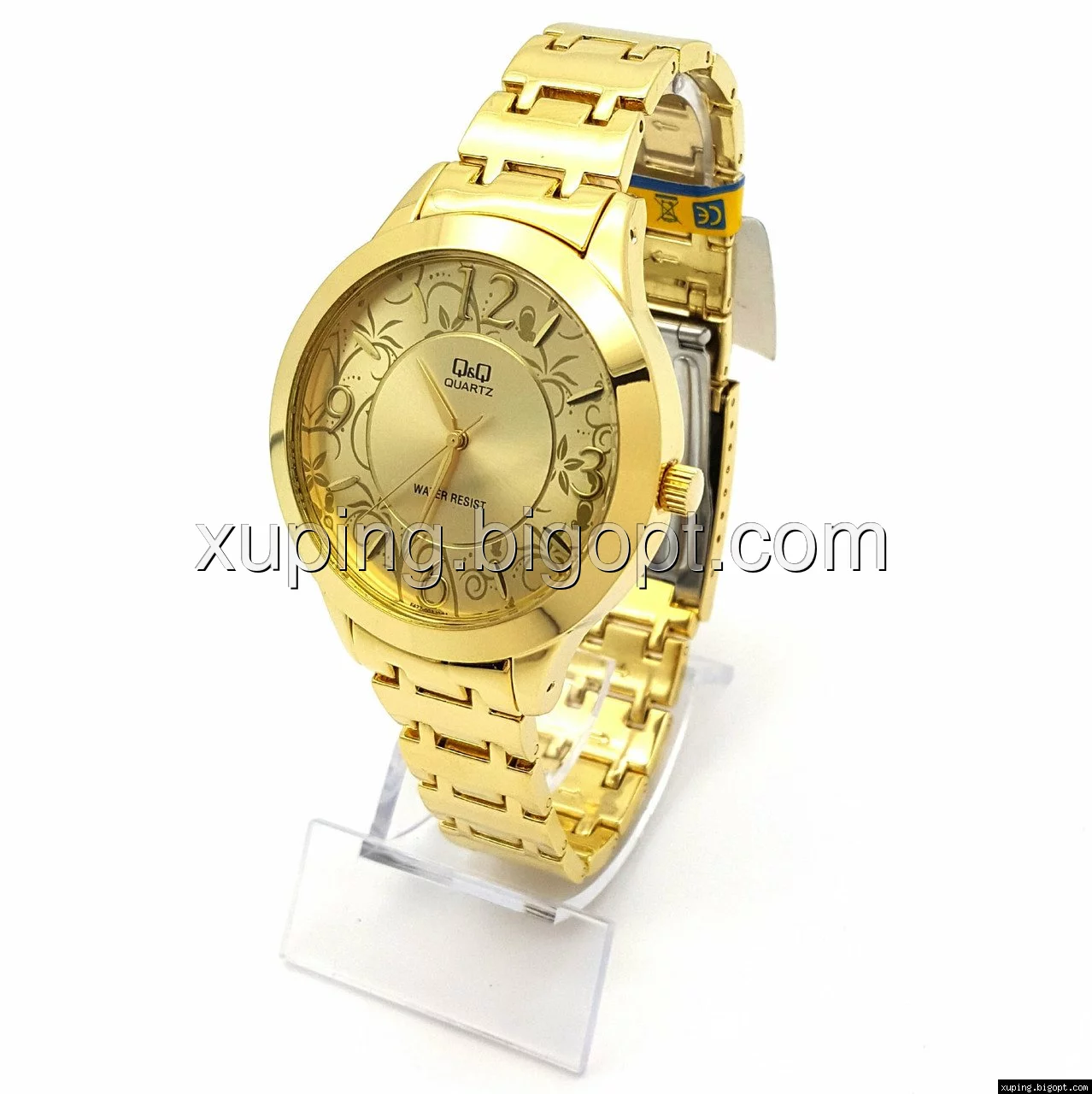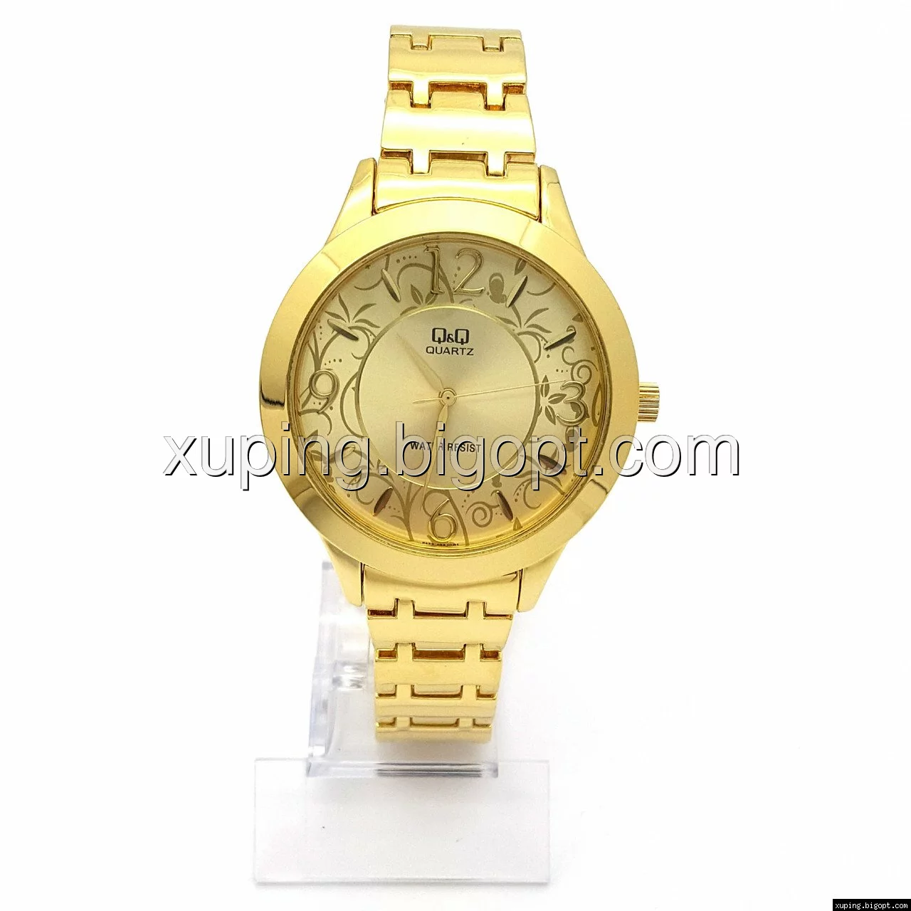 Часы QQ Золотистые, длина браслета 17-22 см, циферблат 43мм