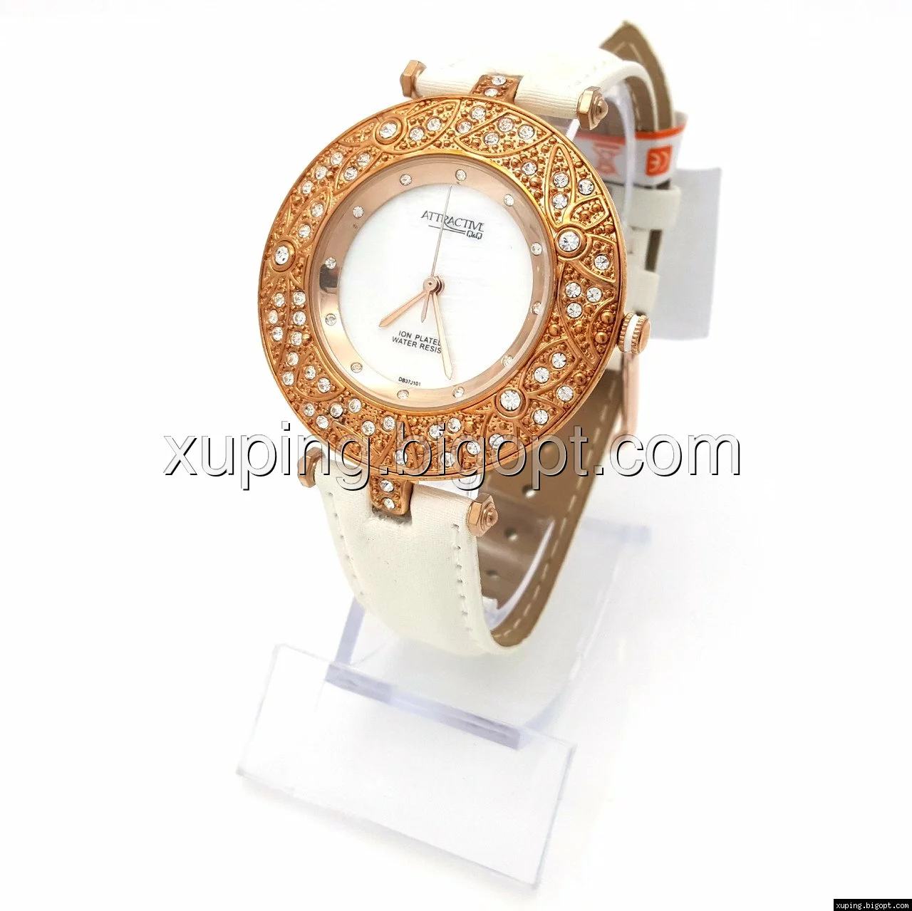 Часы QQ под золото на белом ремешке, длина 16,5-22,5см, циферблат 40мм