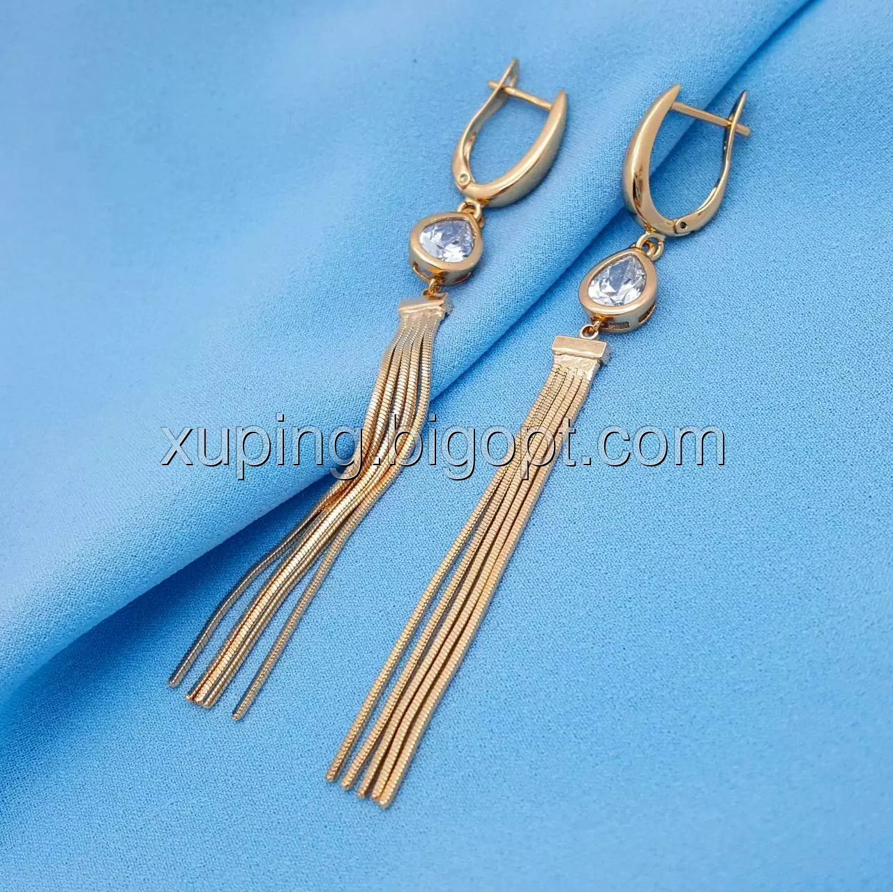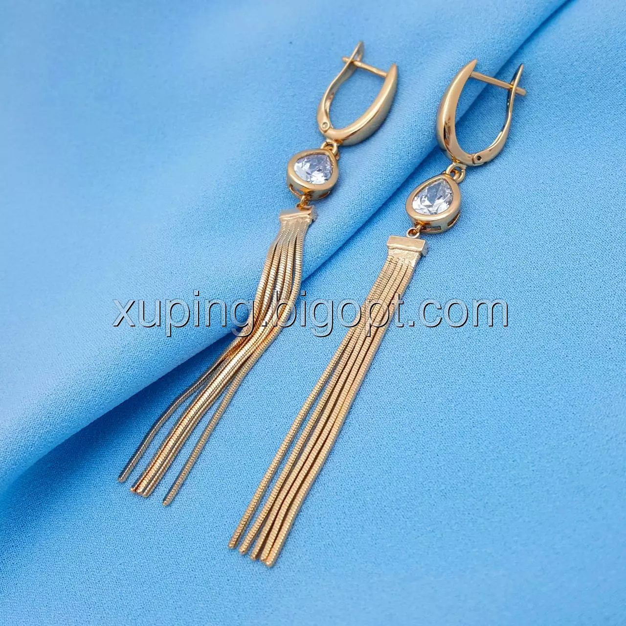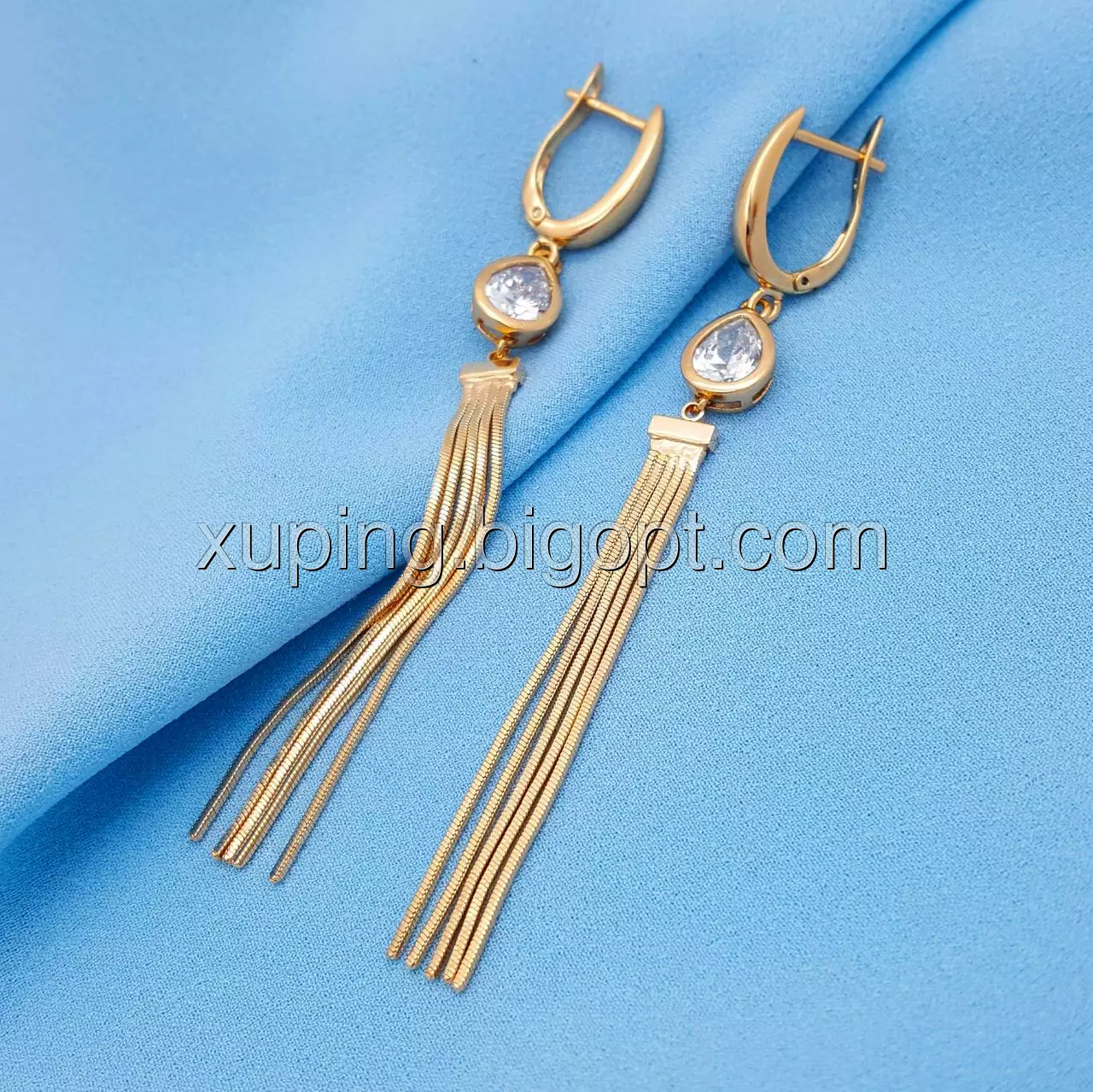 Сережки, Дощик, з цирконієм, англ.замок, позолота Xuping