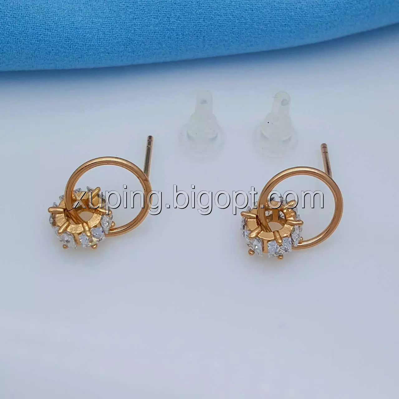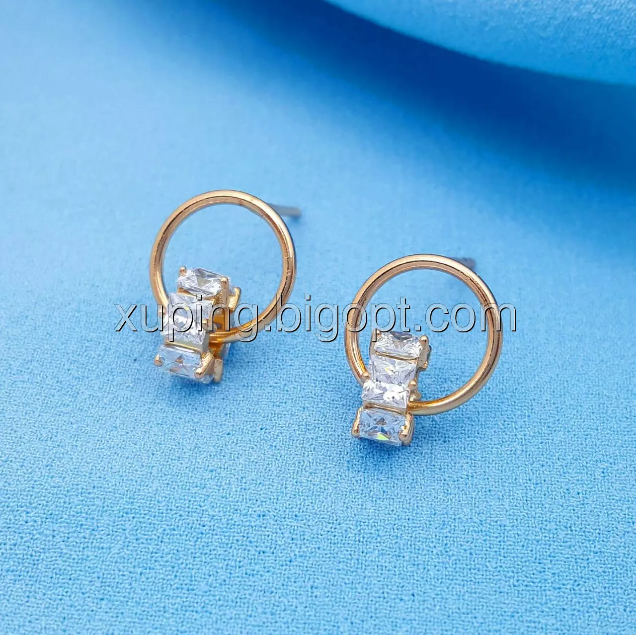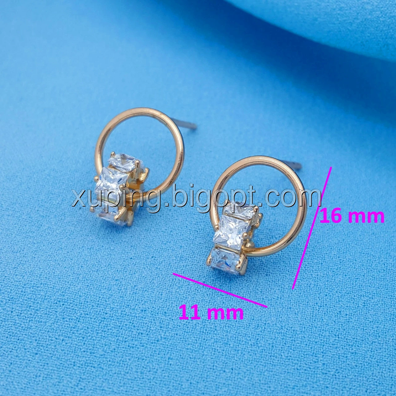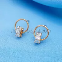 Сережки гвоздики, Подвійні Колечка, з кубічним цирконієм, позолота Xuping