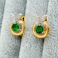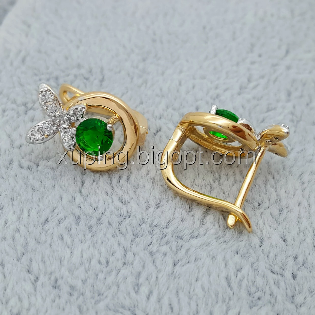 Сережки Кільце з метеликом, вставка зелений цирконій, англ.замок, позолота Xuping, 18К