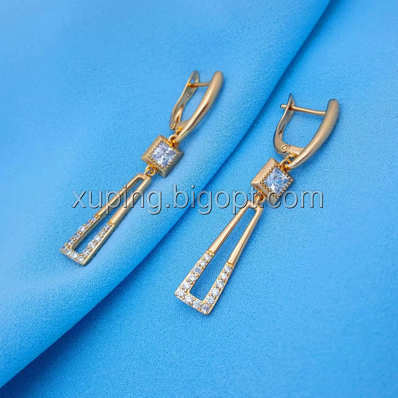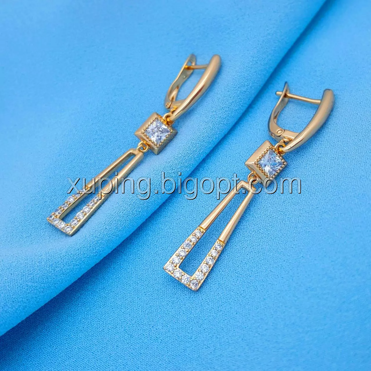 Сережки, Подовжена трапеція, з цирконієм, англ.замок, позолота Xuping