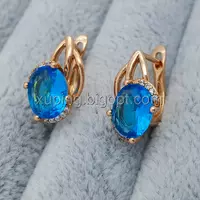 Сережки позолота Xuping, Крапелька Роси, вставка блакитний цирконій, англ.замок, 14К