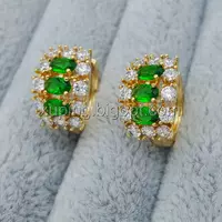 Сережки позолота Xuping, Прямокутник із зеленим цирконієм, 18К