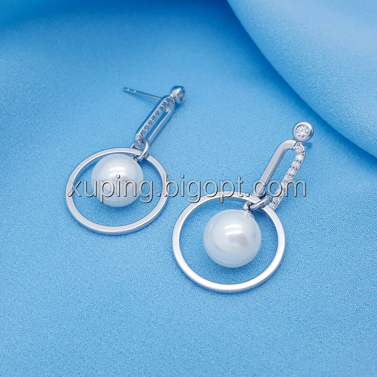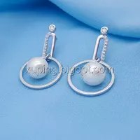 Сережки родій, Класика з перлиною, вставка цирконій, гвоздики Xuping