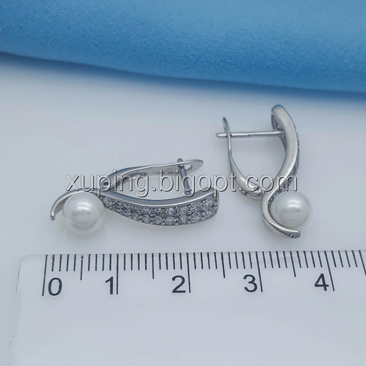 Сережки родовані, Доріжка з перлиною та цирконієм, англ.замок, Xuping