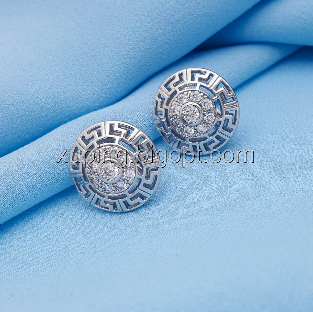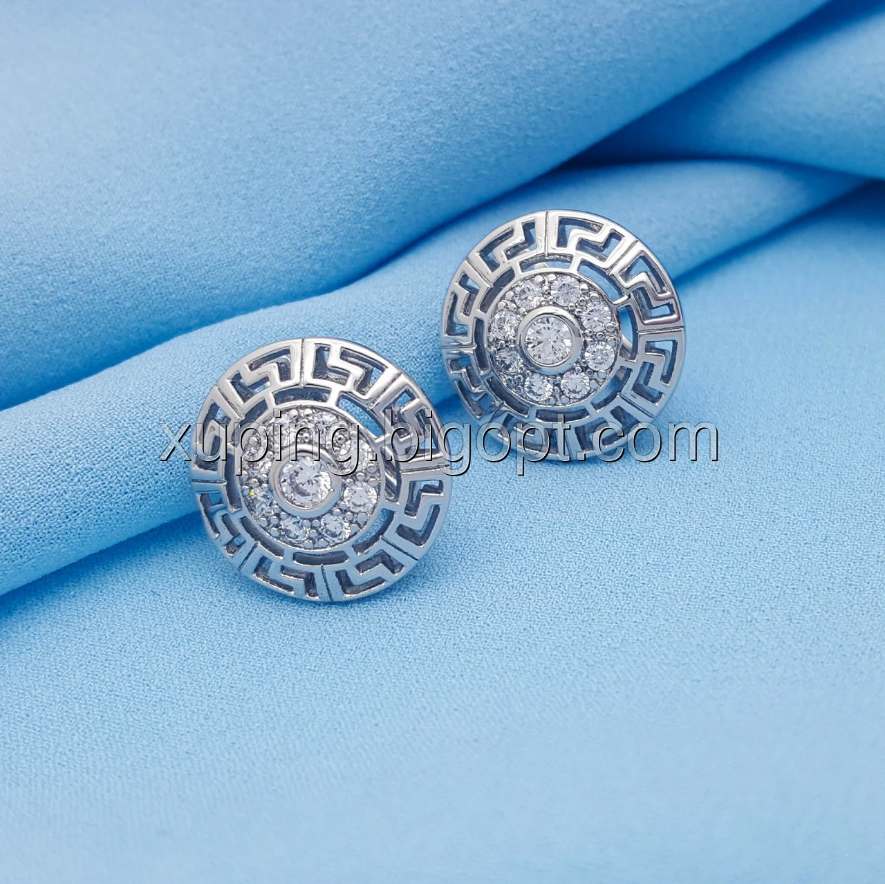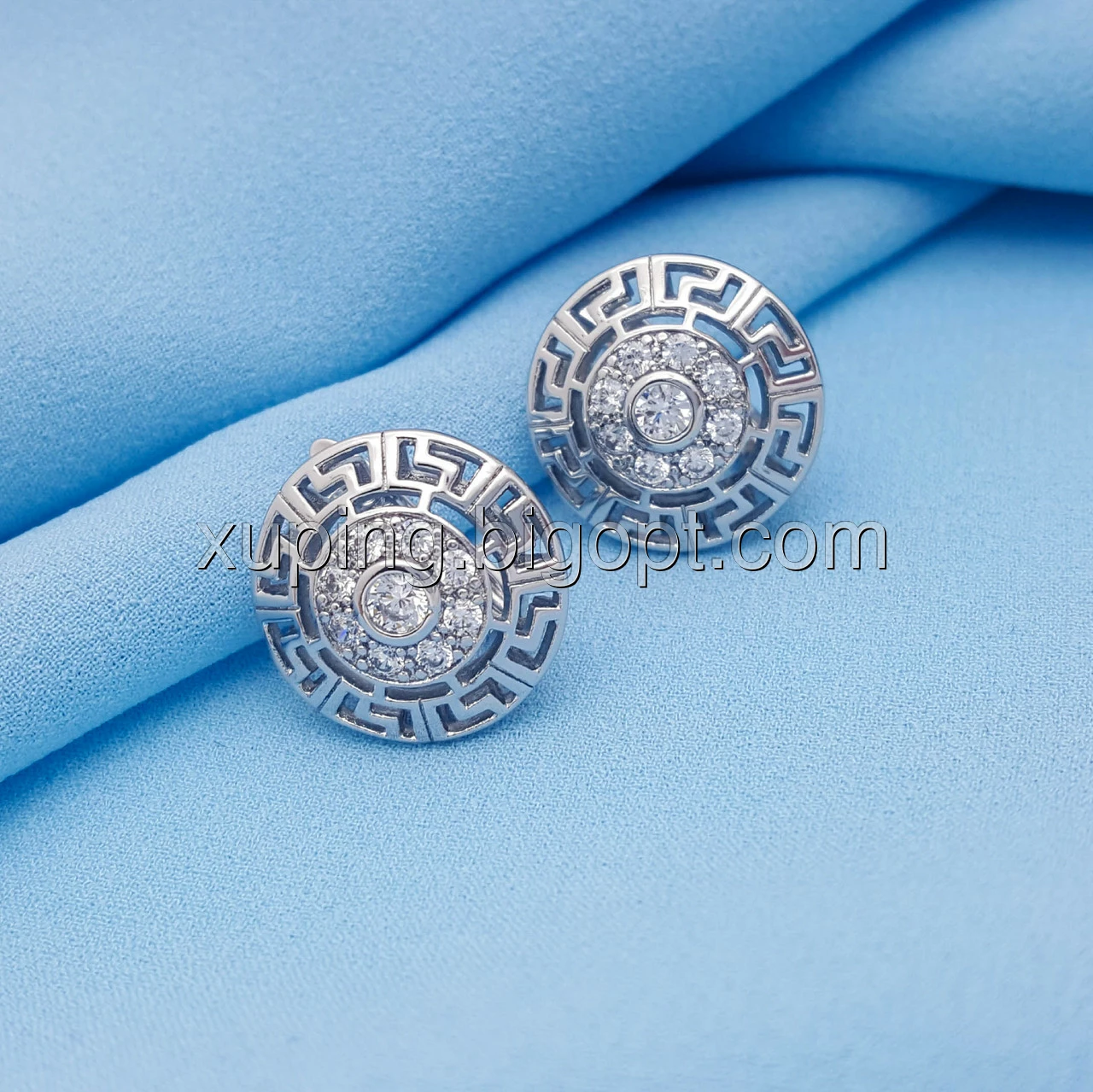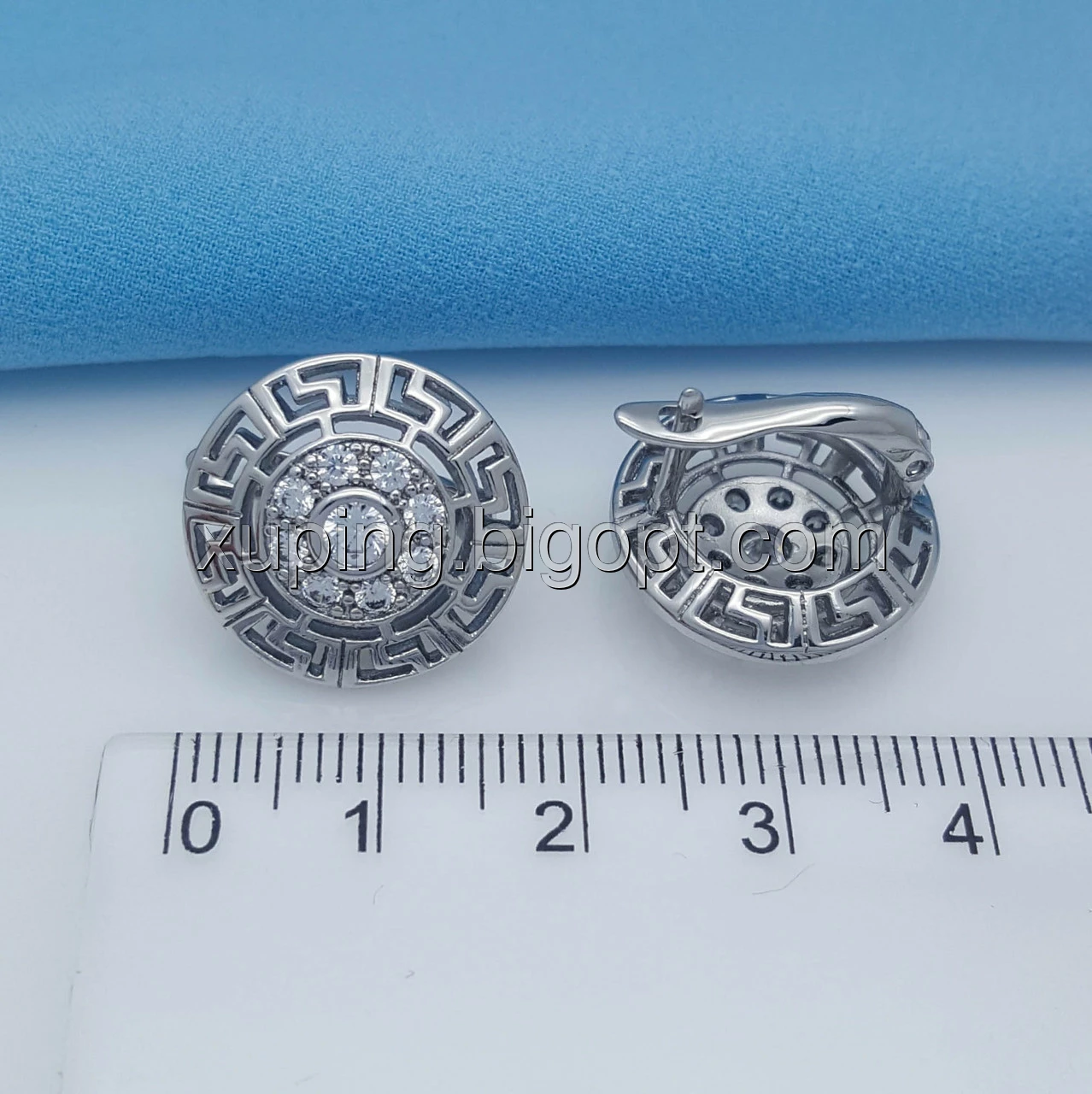 Сережки родовані, Круг з грецьким різбленням, вставка цирконій, англ.замок, Xuping