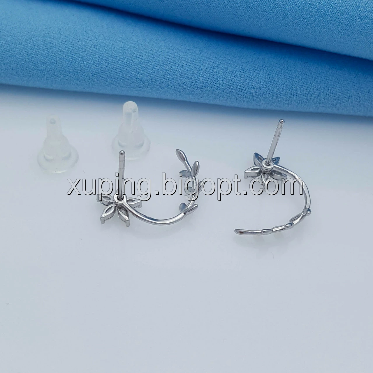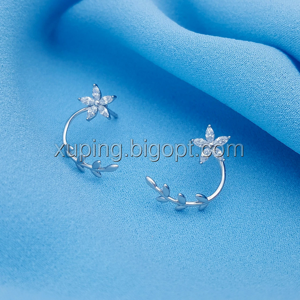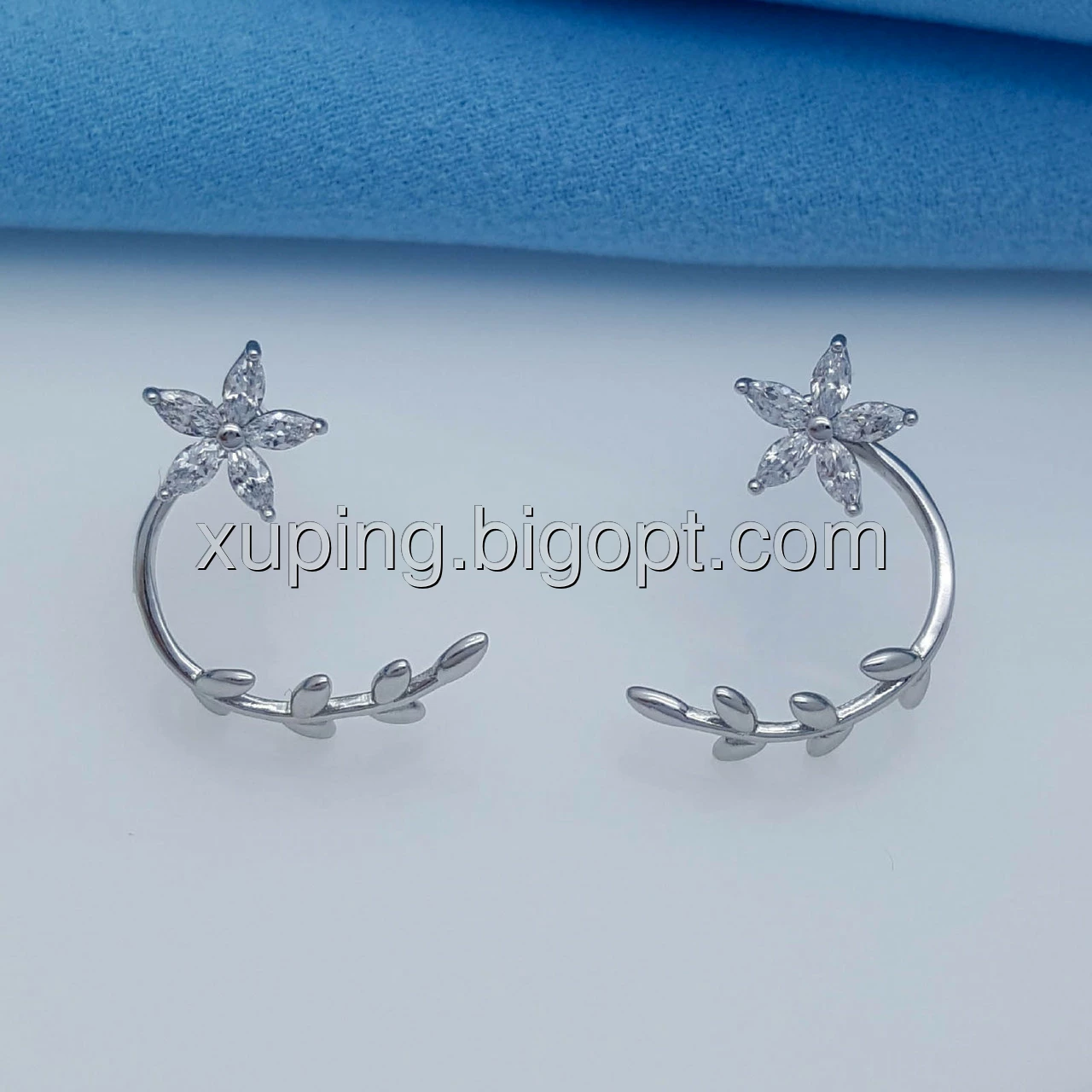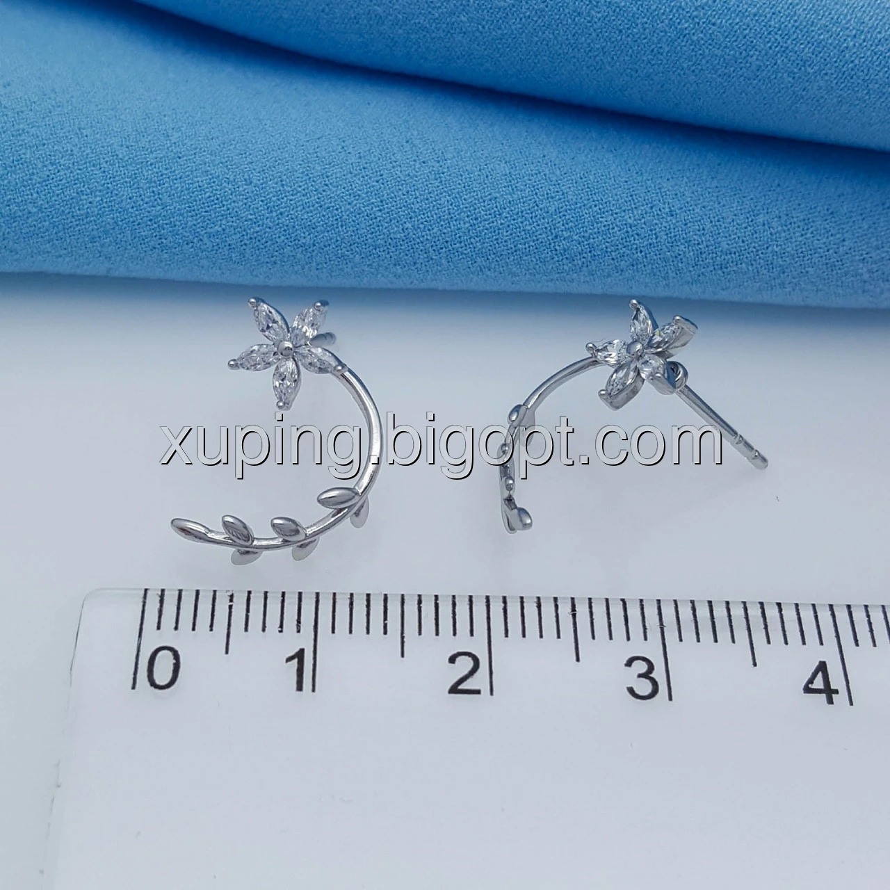 Сережки родовані, Квіточка з гілочкою, вставка цирконій, цвяшки Xuping