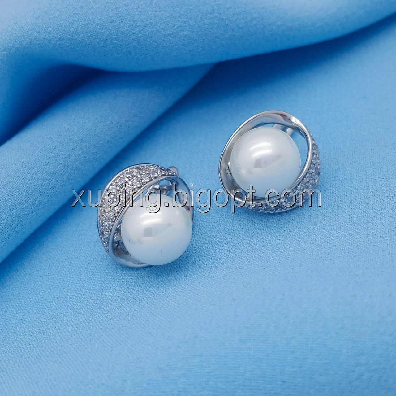 Сережки родовані, Овал з Перлиною, вставка цирконій, англ.замок, Xuping