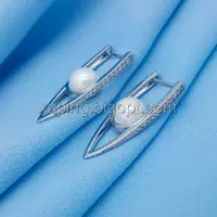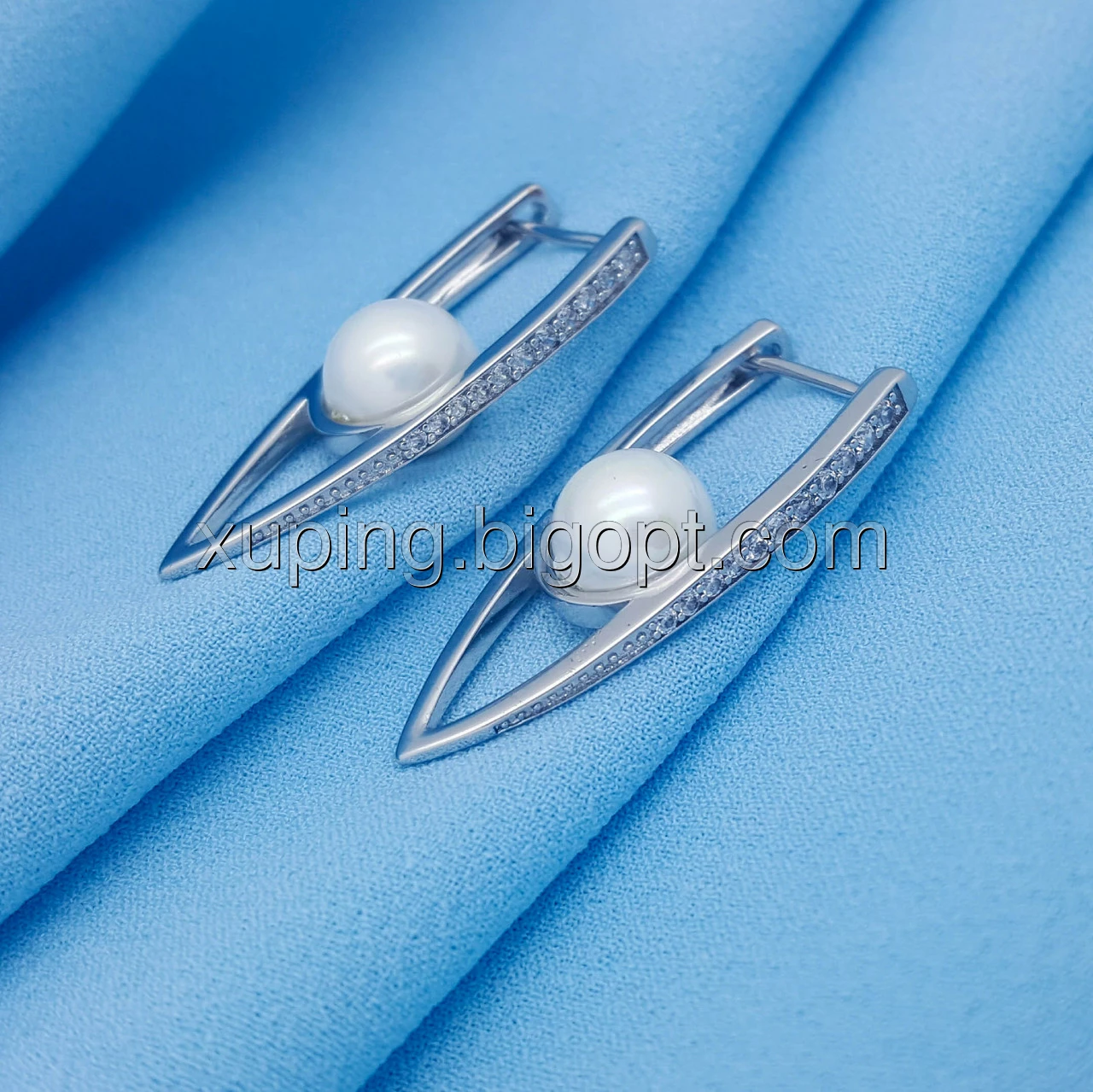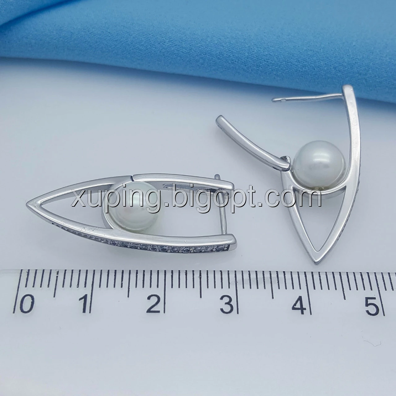 Сережки родовані, Трикутник з Перлиною, вставка цирконій, англ.замок, Xuping