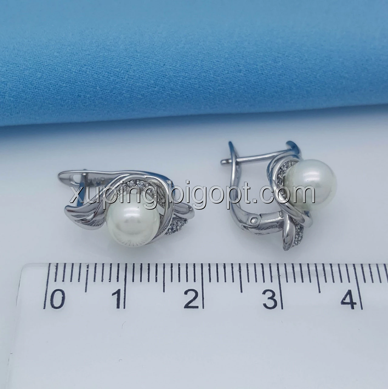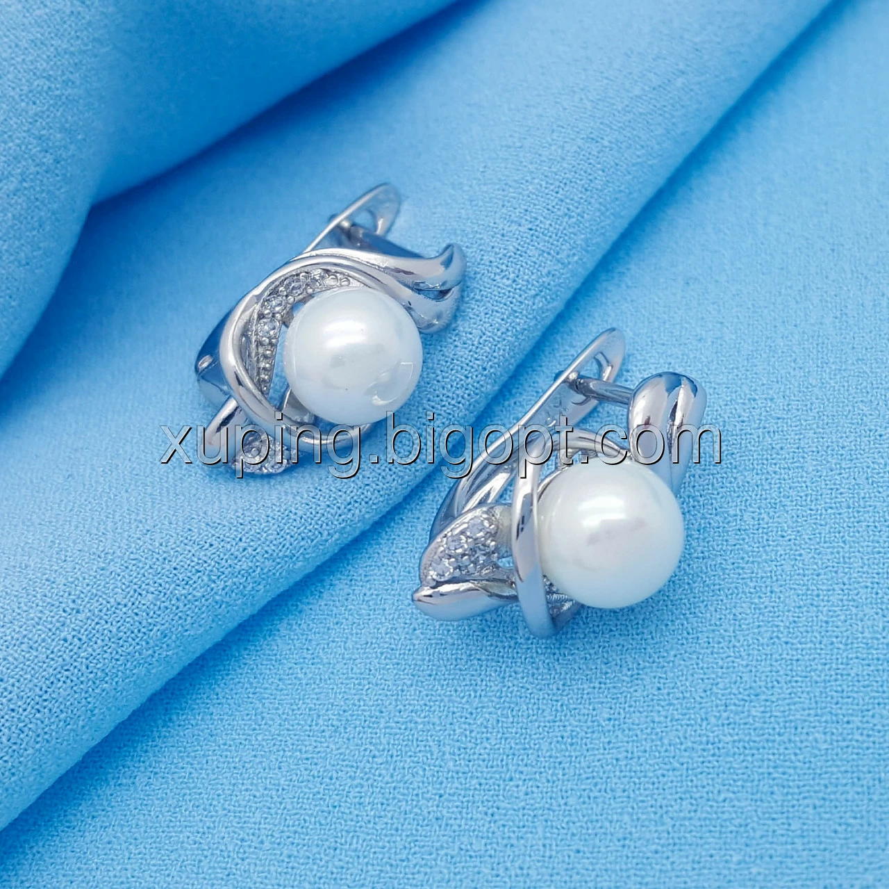 Сережки родовані, Завиток з перлиною, англ.замок, Xuping