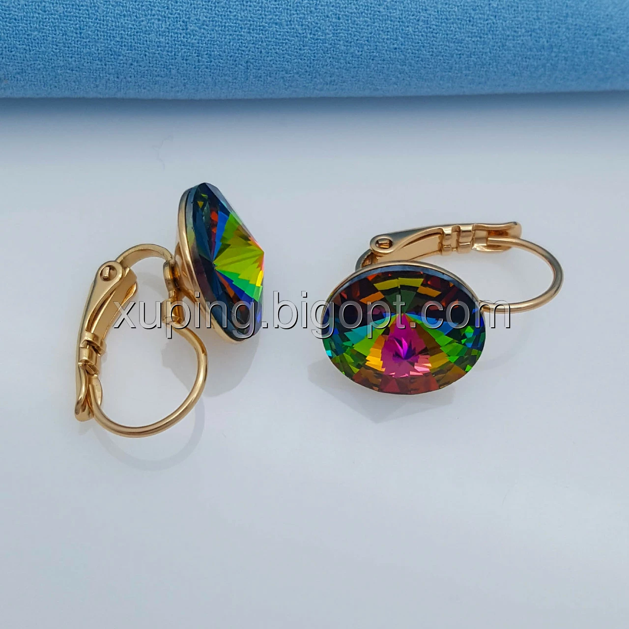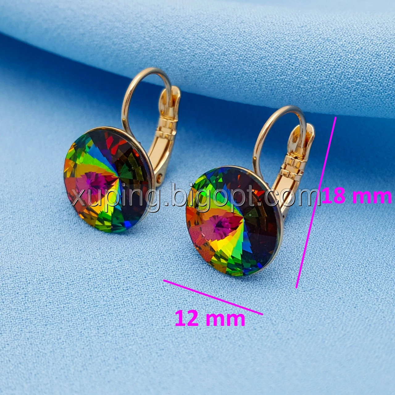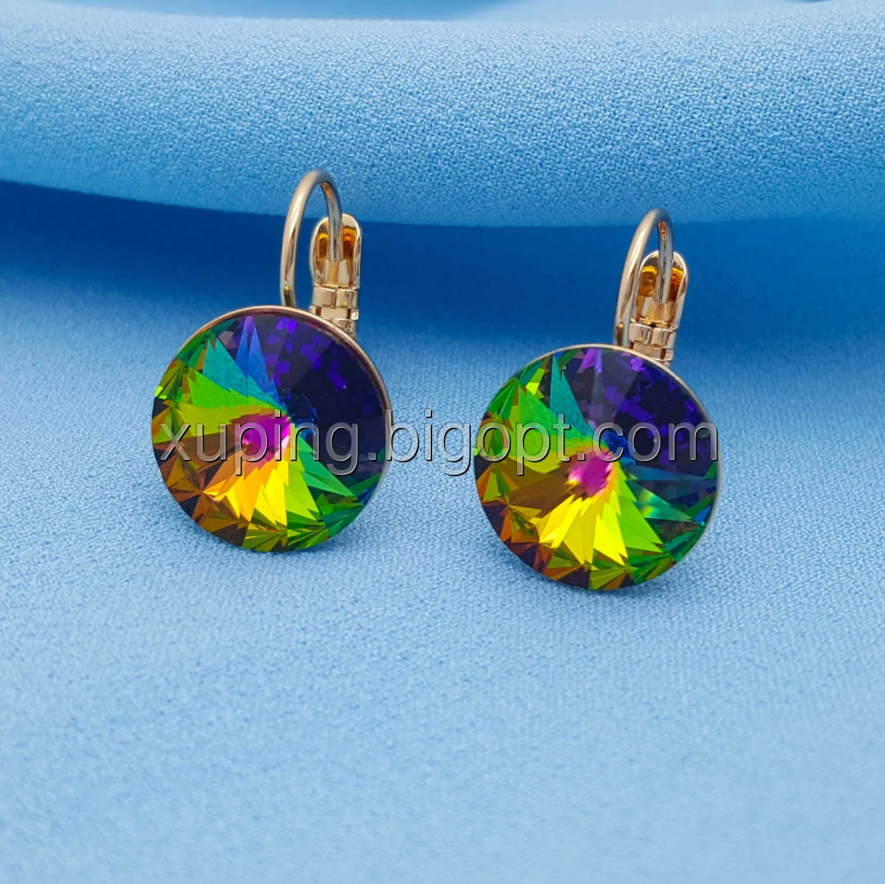 Сережки Swarovski, хамелеон з зеленим мерехтінням, позолота Xuping