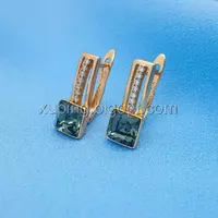 Сережки Swarovski, класичні, Сірий Квадрат, англ.замок, позолота Xuping