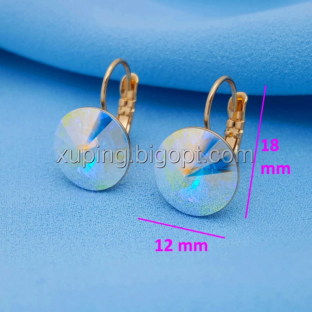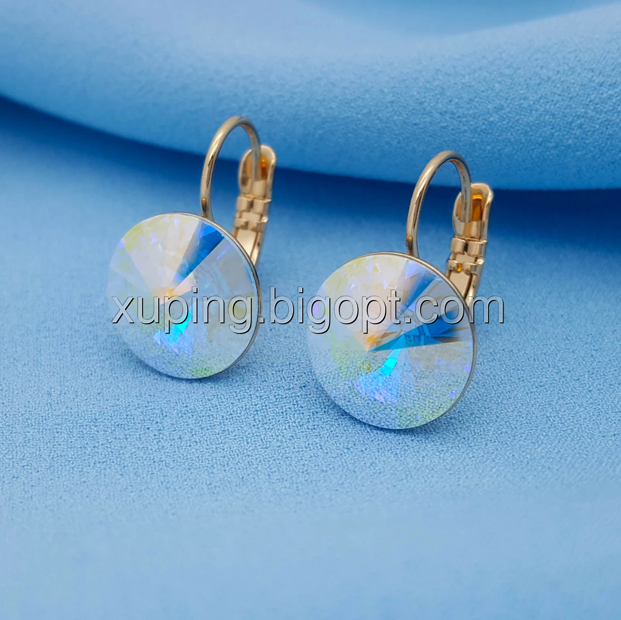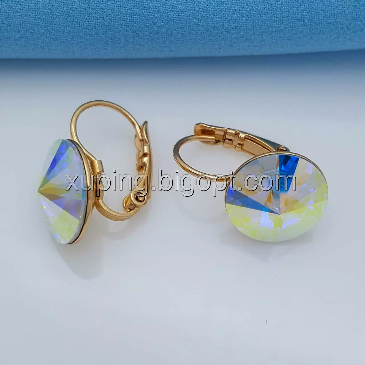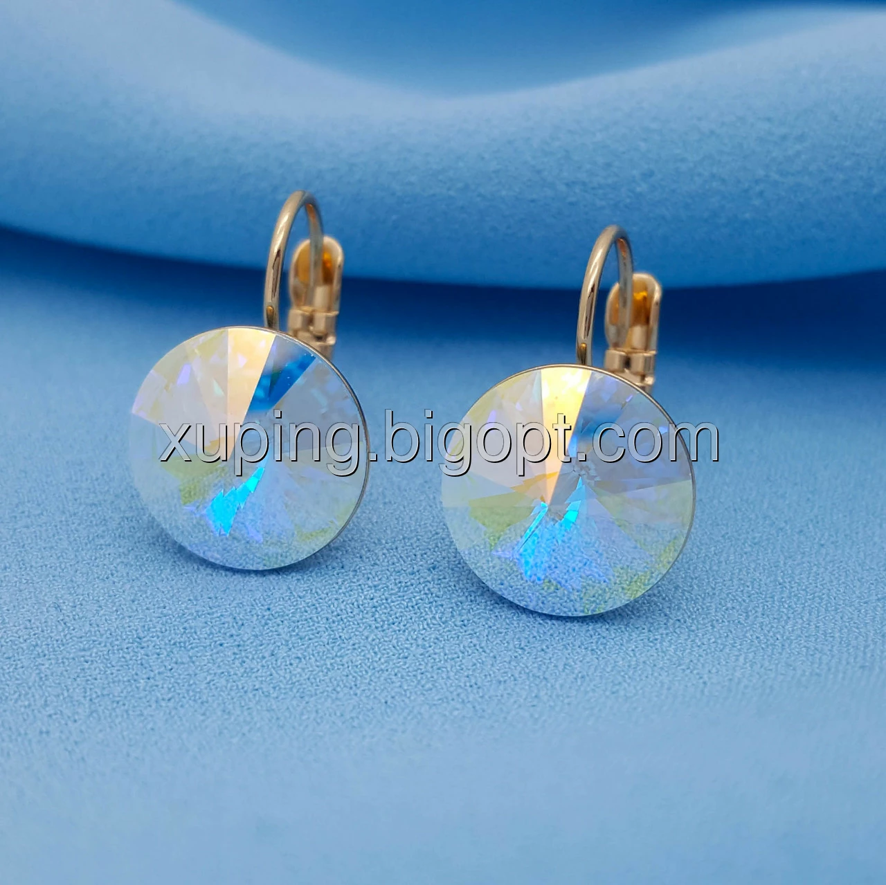 Сережки Swarovski, з блакитно-золотим переливом, англ.замок, позолота Xuping