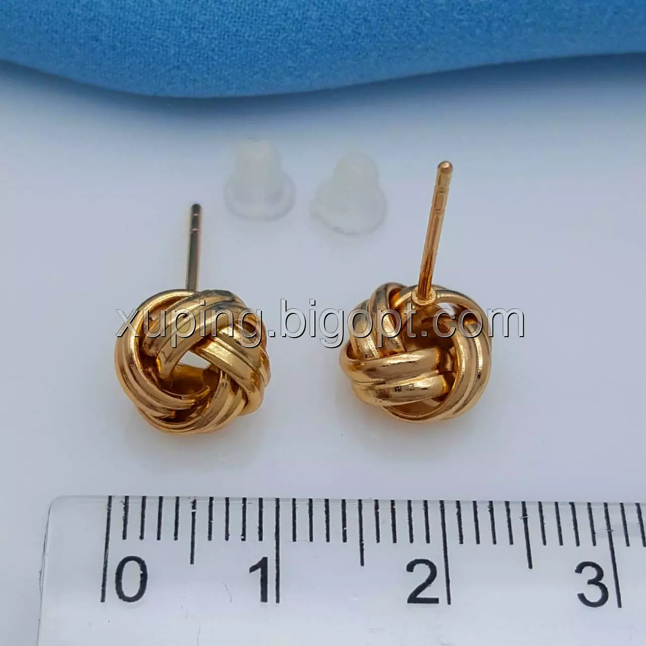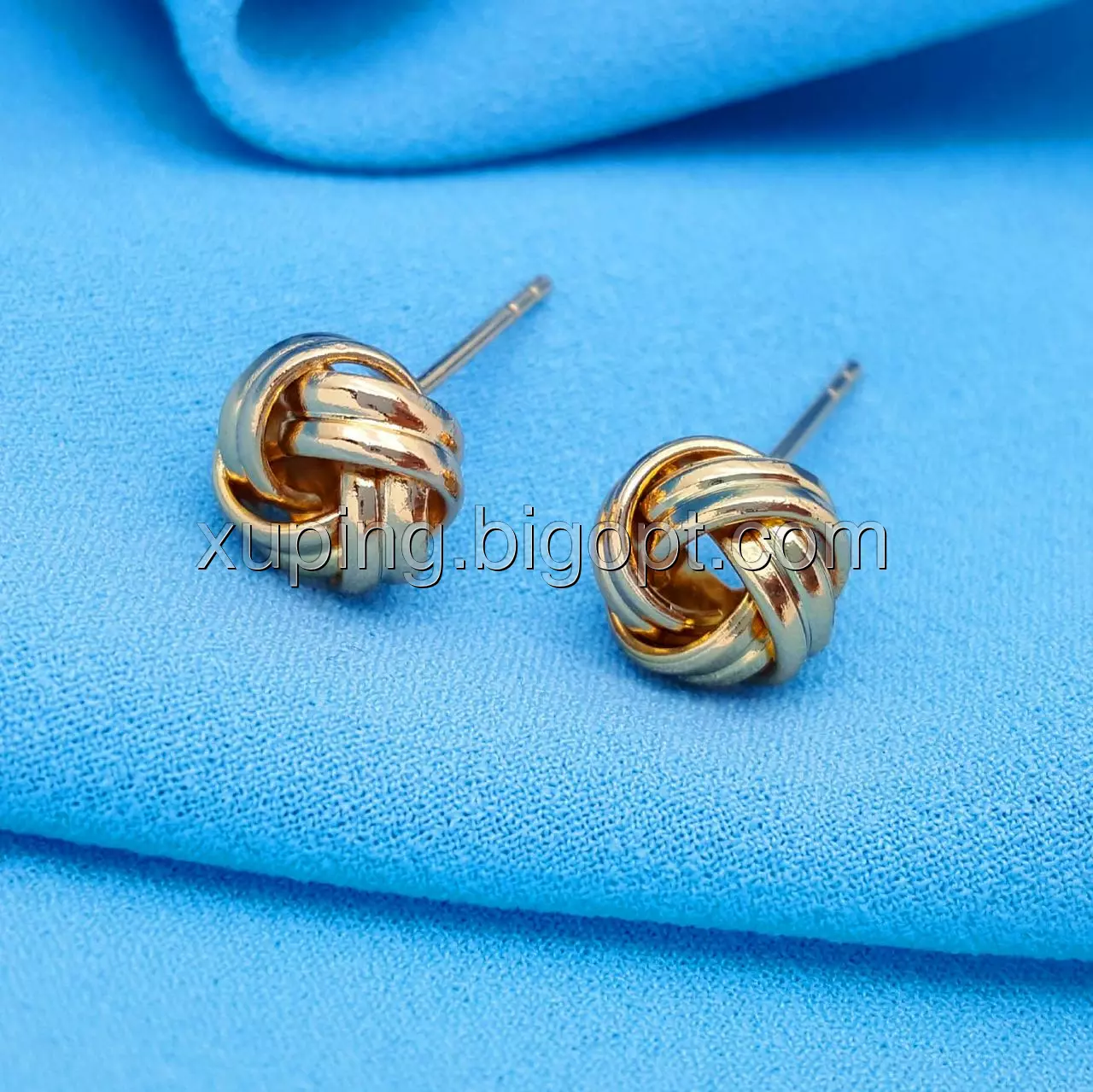Сережки цвяшки, Глянцевий Вузлик, без каменів, позолота Xuping