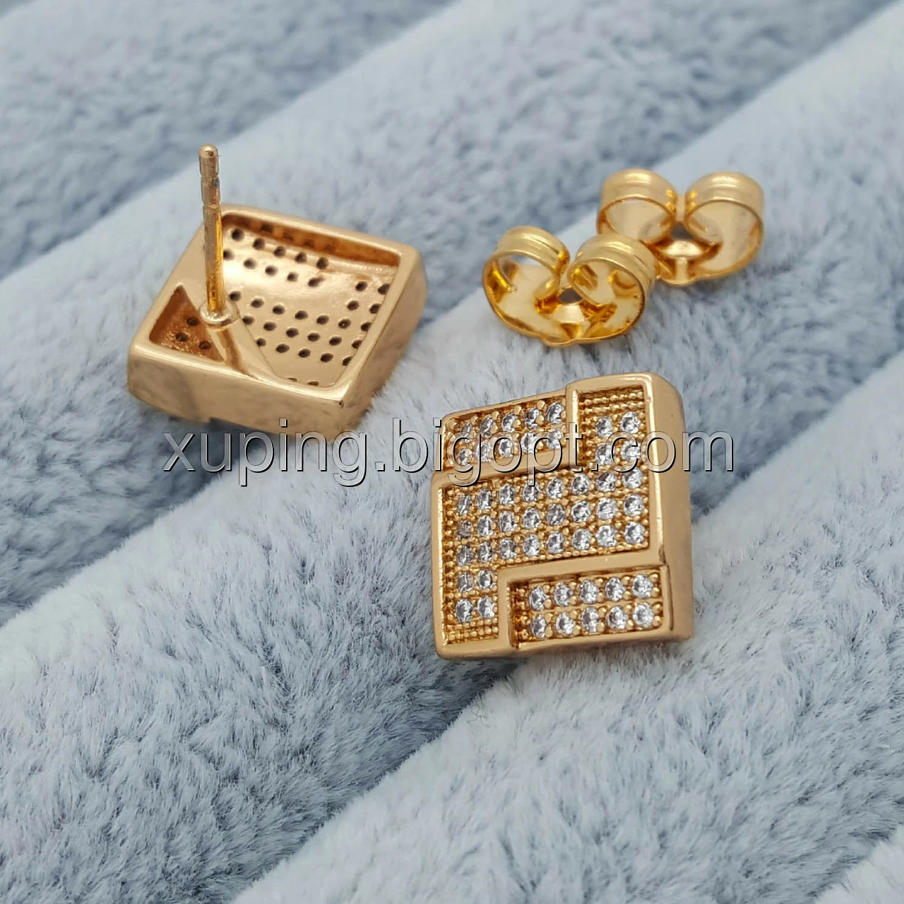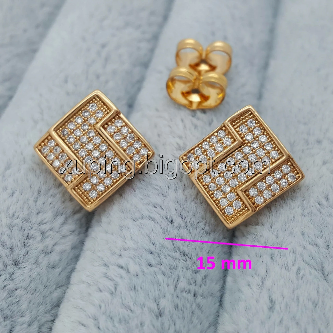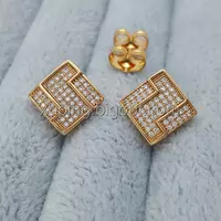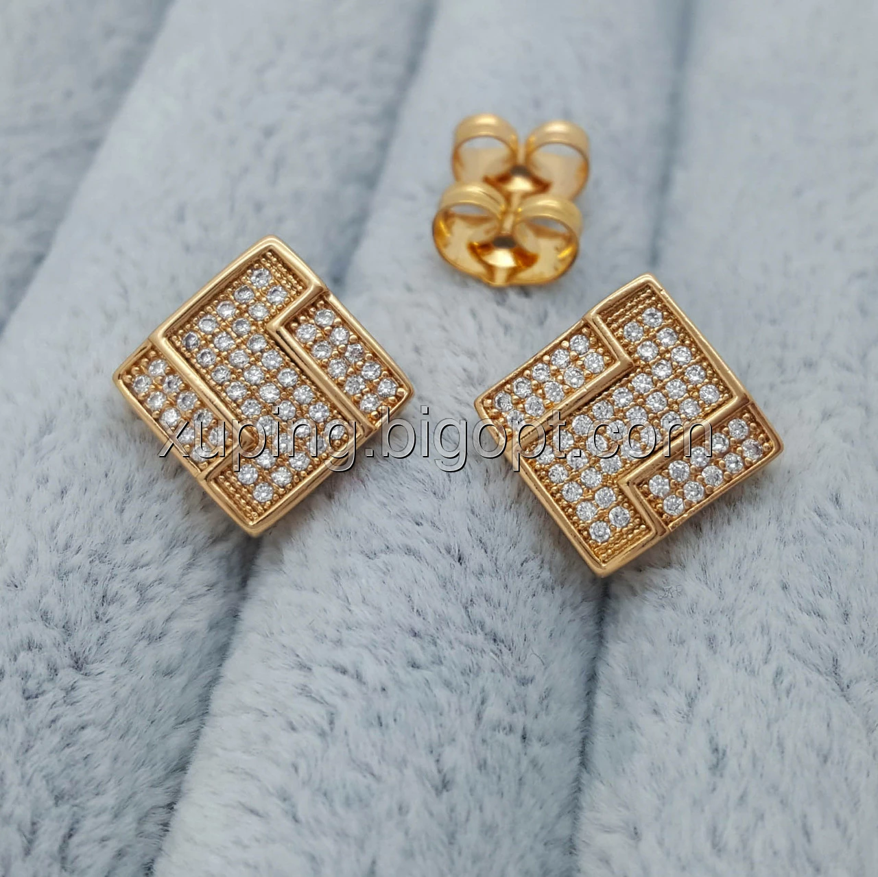 Сережки цвяшки, Квадрат з візерунком та цирконієм, позолота Xuping, 18К