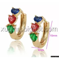 Серьги 3 Сердца с разноцветным цирконием, позолота