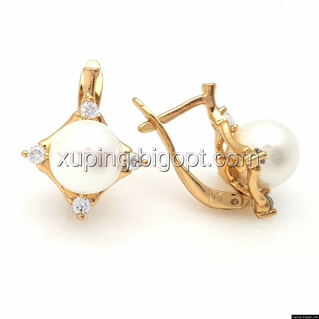 Серьги 704650 Ромбик с Жемчугом и цирконием по кругу, англ.замок, позолота