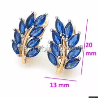 Сережки Гілочка з нахилом, вставка синій цирконій, англ.замок, позолота+родій, 18К