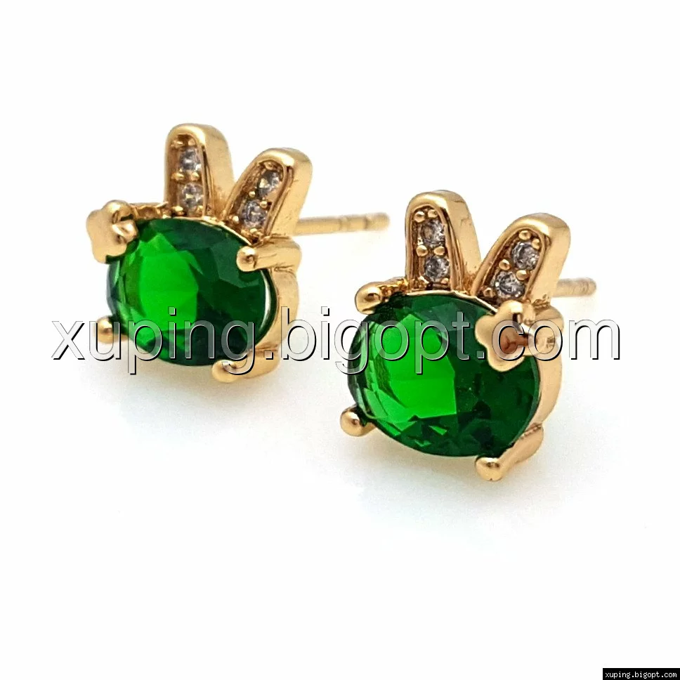 Серьги 704687 гвоздики, Зайченок с бантиком и зеленым цирконием, позолота