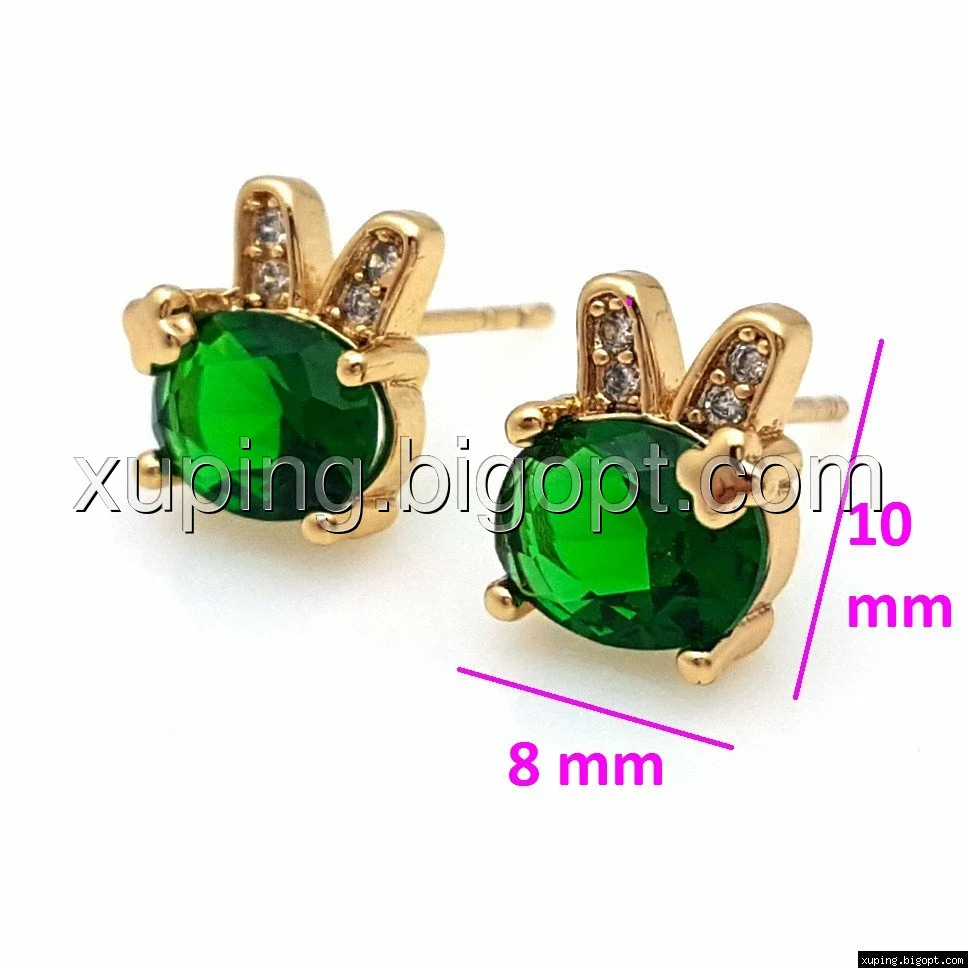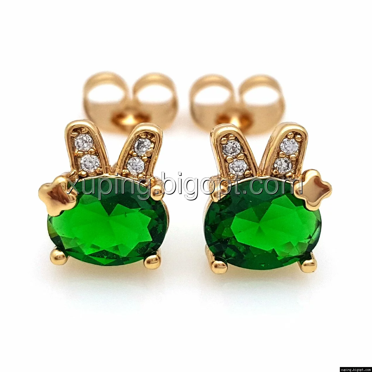 Серьги 704687 гвоздики, Зайченок с бантиком и зеленым цирконием, позолота