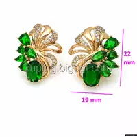 Серьги Ажурный Цветок, с зеленым цирконием, англ.замок, позолота