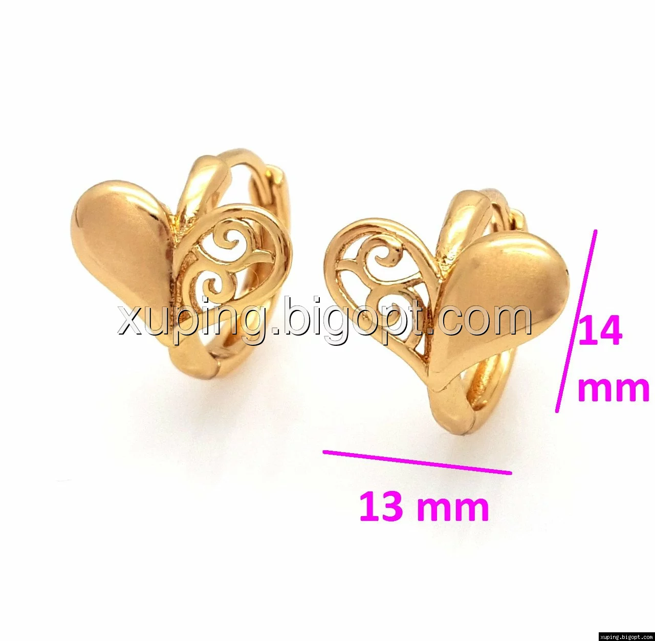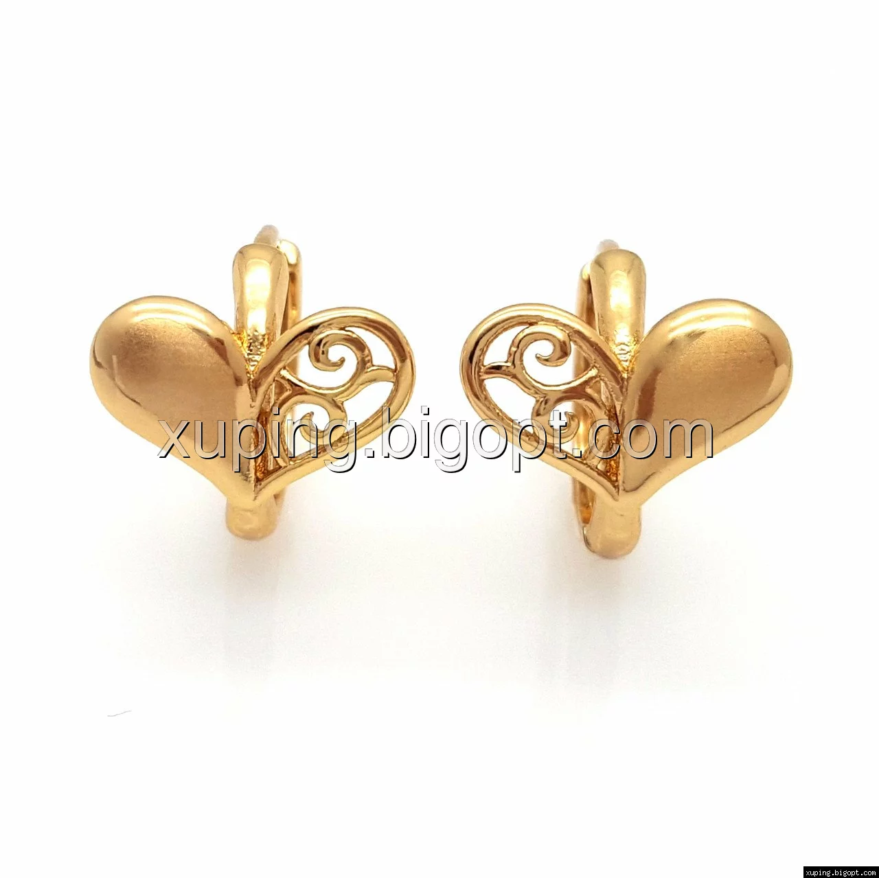 Серьги Ажурное Сердце, без камней, позолота Xuping