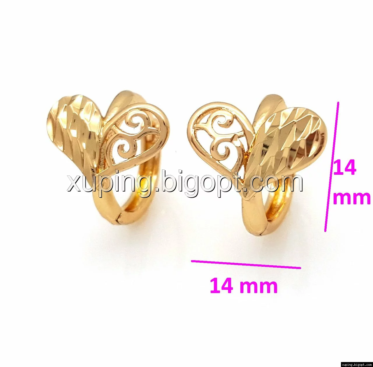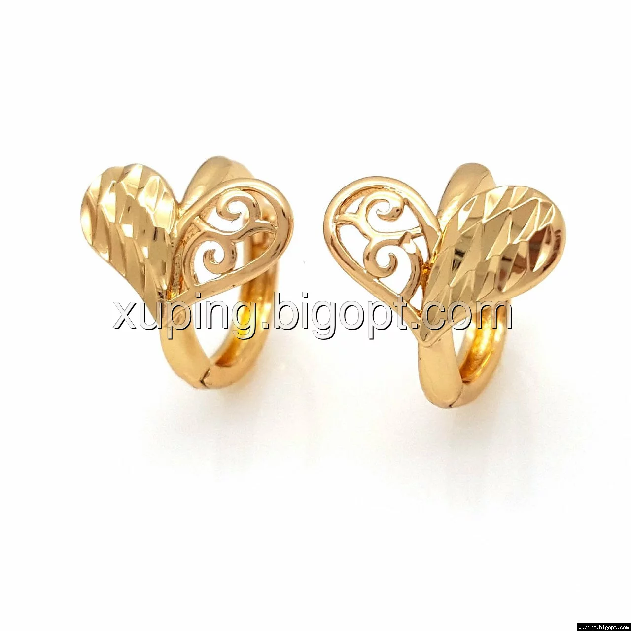 Серьги Ажурное Сердце, с резным узором, без камней, позолота Xuping
