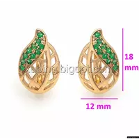 Серьги Ажурный Лепесток, с зеленым цирконием, англ.замок, позолота