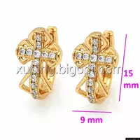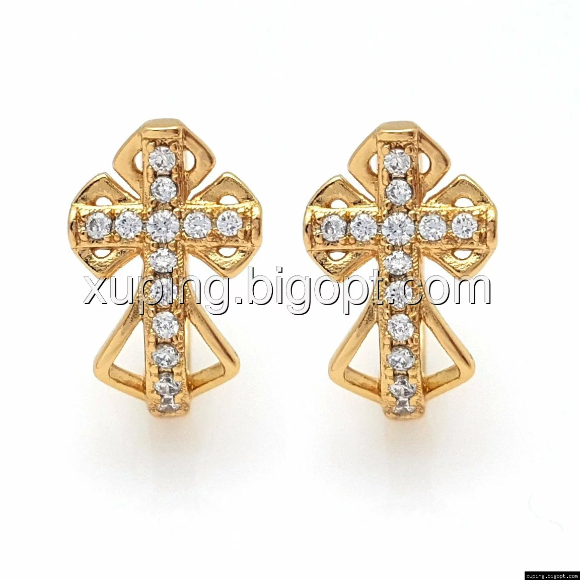 Серьги ажурные, Крестики с цирконием, англ.замок, позолота