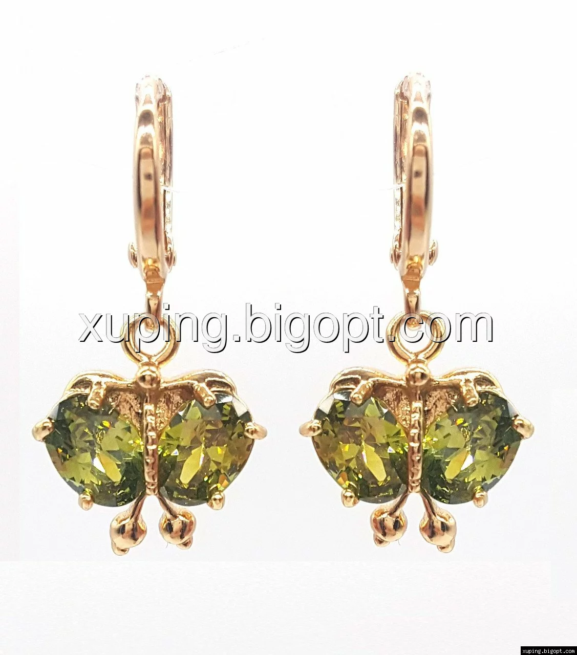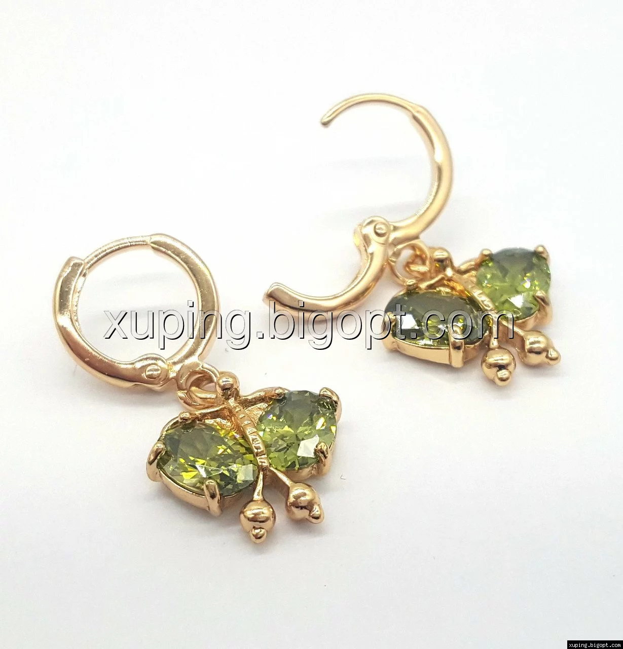 Серьги Бабочка, оливковый цирконий 25мм*13мм, позолота