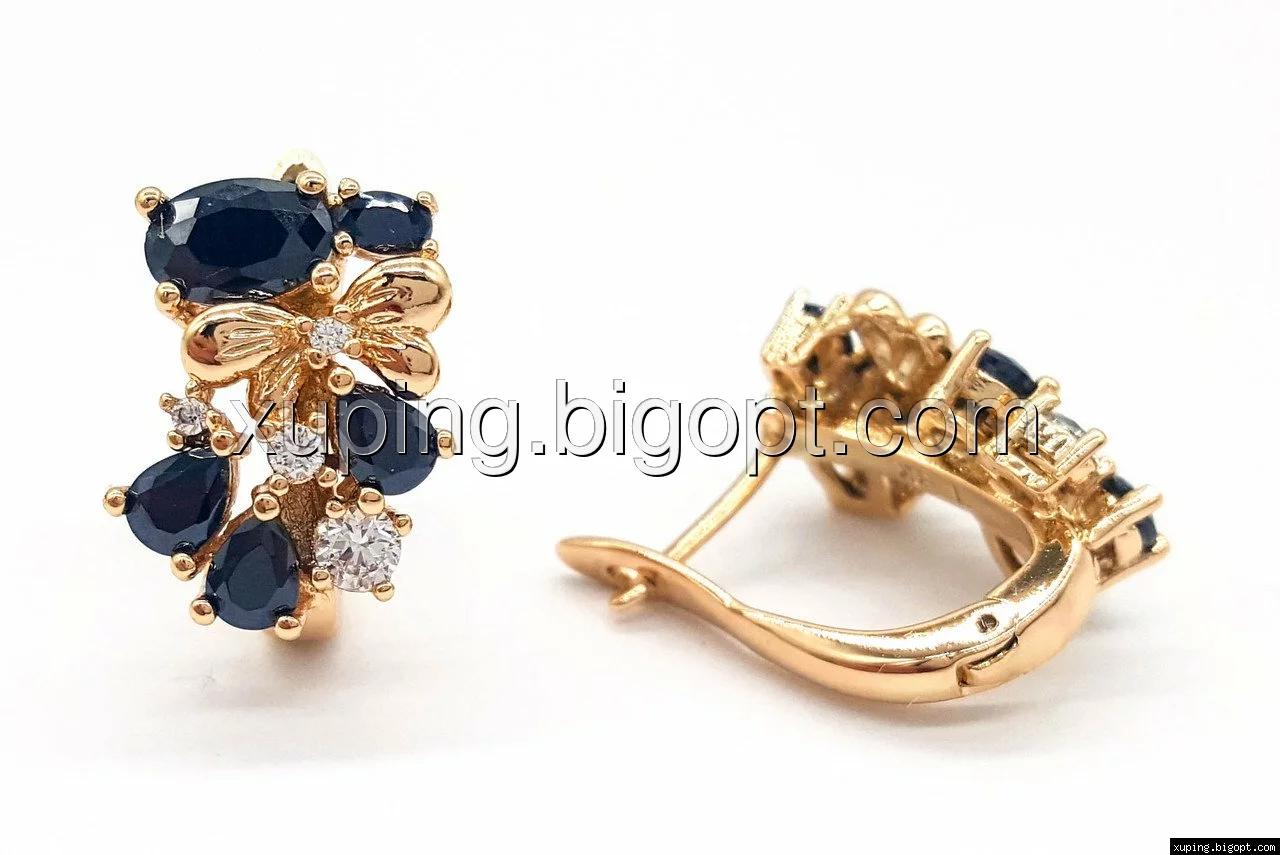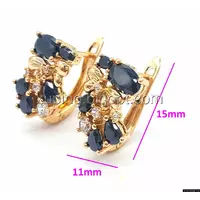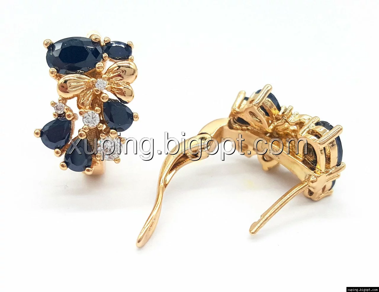 Серьги Бабочка, с черным цирконием, англ.замок, позолота